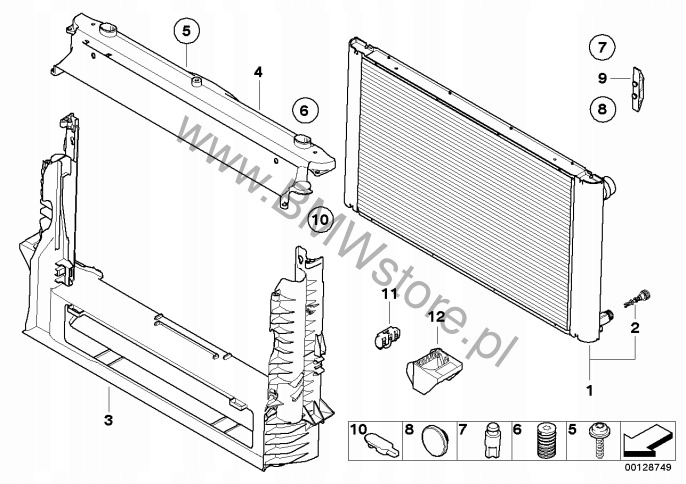 BMW E60 E61 E63 КРОНШТЕЙН ГУМОВОГО ПІДШИПНИКА НИЖНЯ ПОДУШКА РАДІАТОРА 7542516