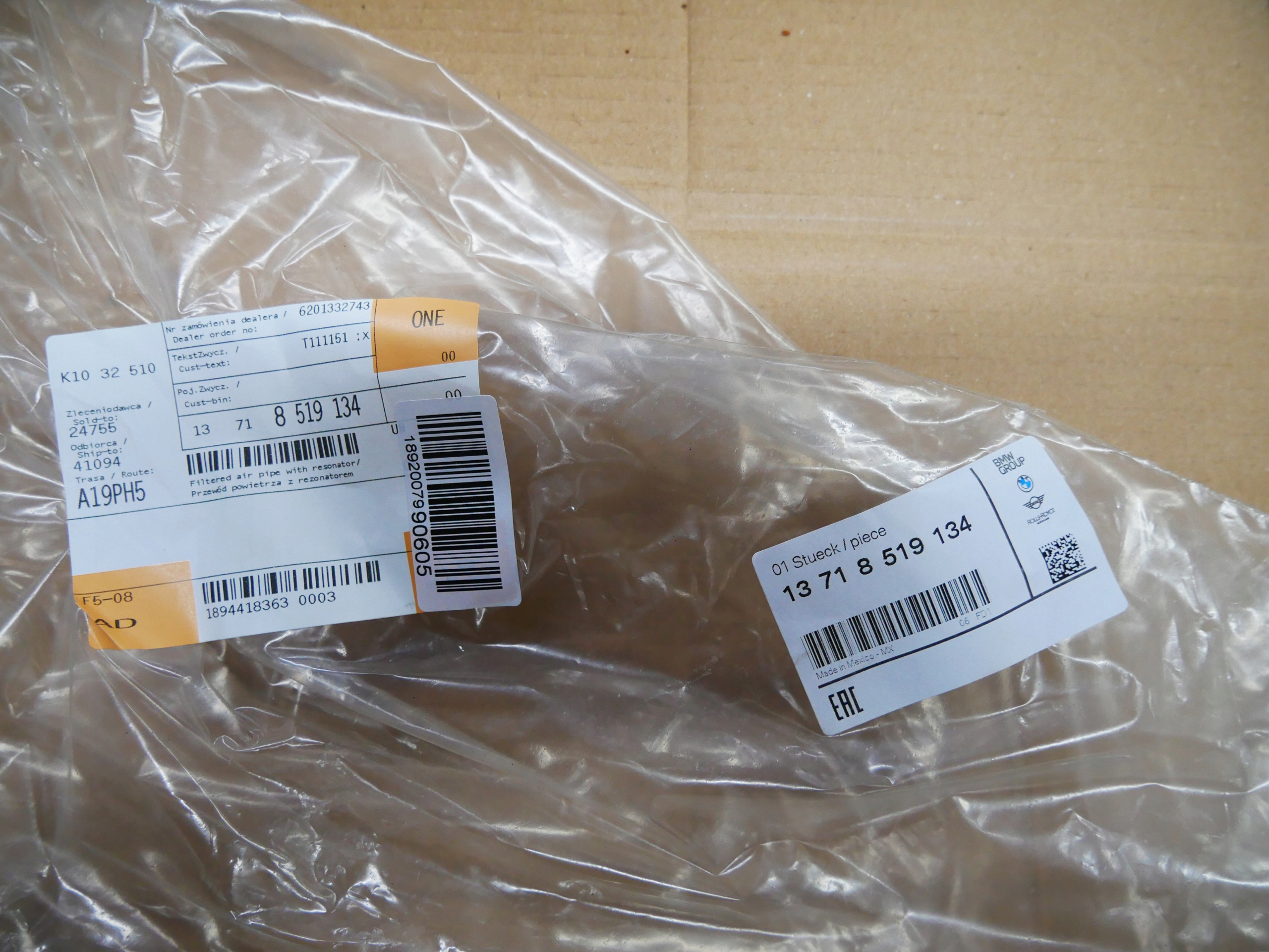 BMW F10 F11 F25 F26 B47 Ресонатор шланга кабелю шланга 8519134