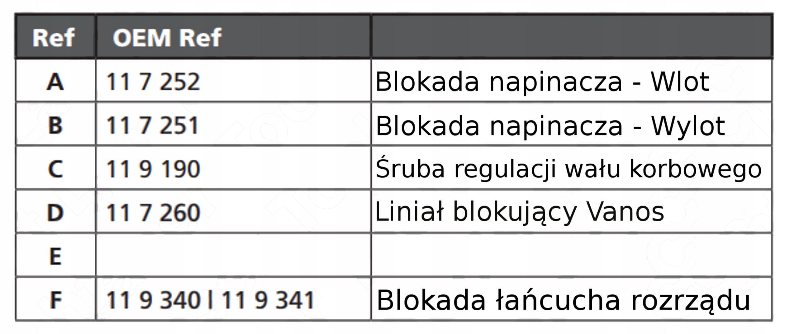 Набір замок для встановлення термінів двигуна, призначеного для бензинових двигунів 1.6, що працює на двигуні на BMW N40 | N45 | N45T, встановлений у автомобілях BMW '1' та '3'