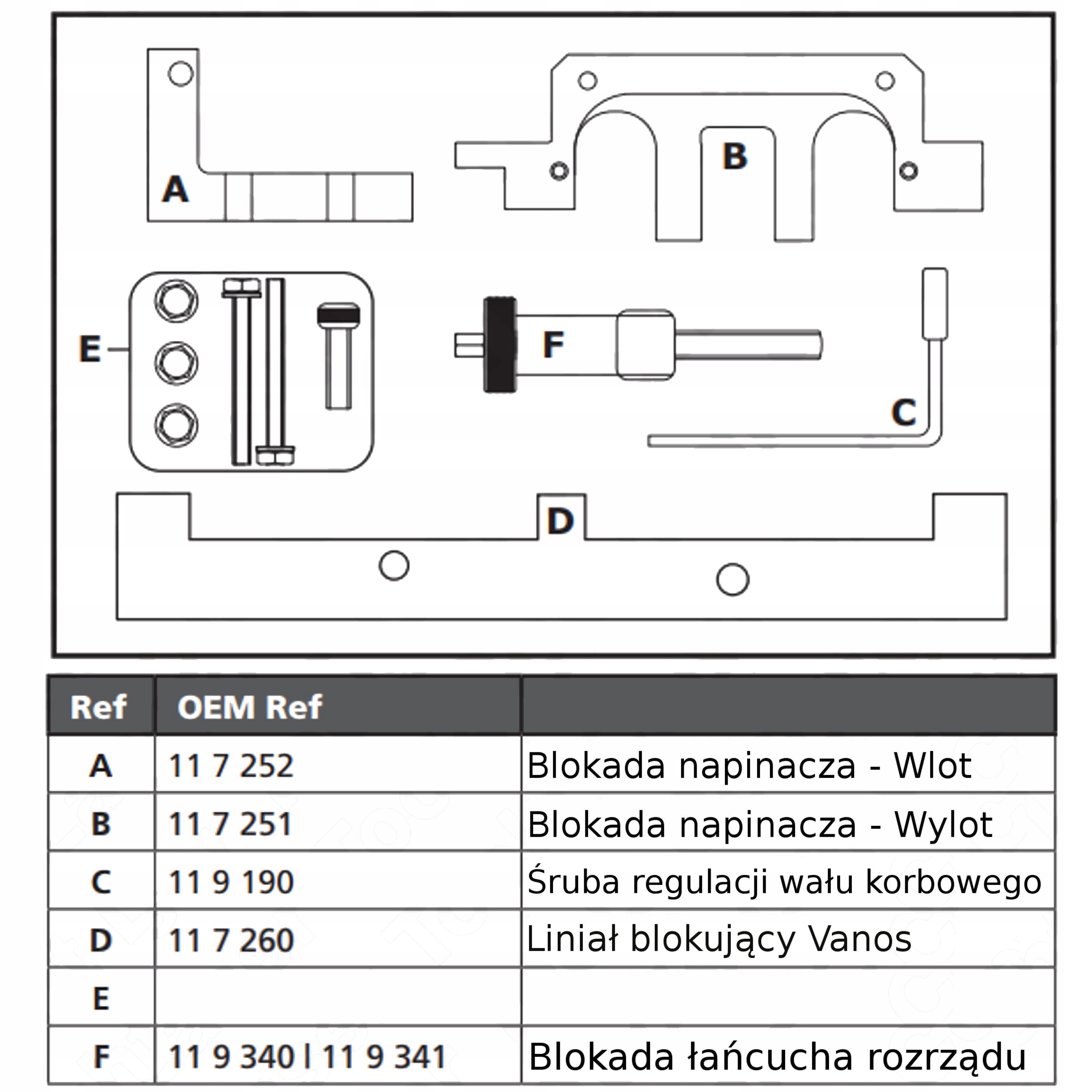 Набір інструментів для двигуна, призначений для двигунів, керованих ланцюгом 1.6, на BMW N40 | N45 | N45t.