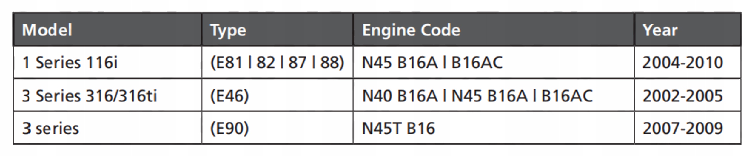 - Zum Beispiel BMW 116I E81 und E87, Baujahr 2003 BIS 2009