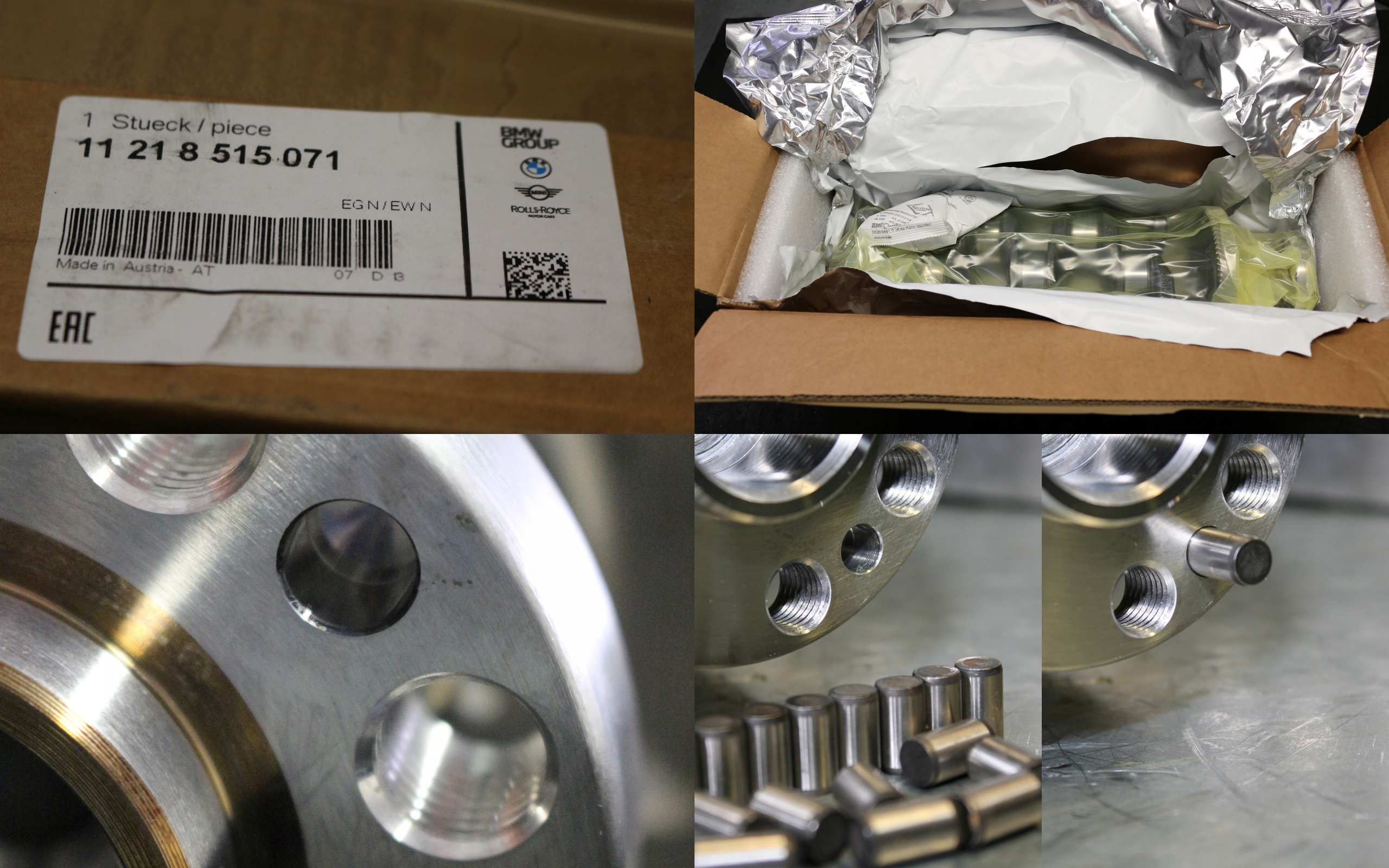 Якщо ви вирішите придбати двигун із новим колінчастим валом BMW OE, ви можете легко перевірити походження вала. Нові оригінальні вали BMW продаються без установчого штифта, який необхідно вбити у вал. Після того, як штифт вбитий, його неможливо вийняти, не пошкодивши вал. Це простий метод перевірки, тому що використаний вал можна помити, щоб він виглядав як новий!