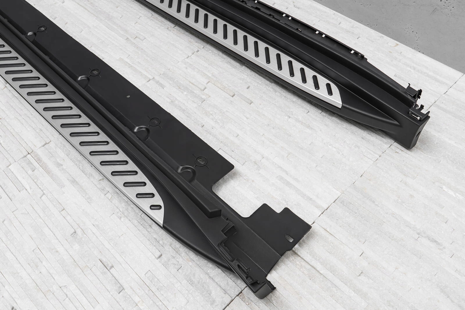 Бічні підніжки були розроблені для підвищення комфорту під час входу та виходу з автомобіля, а також для більш зручного робочого положення під час розміщення вантажів на даху автомобіля. Пороги не тільки забезпечують комфорт, але і підвищують безпеку, що особливо важливо для дітей і людей похилого віку.