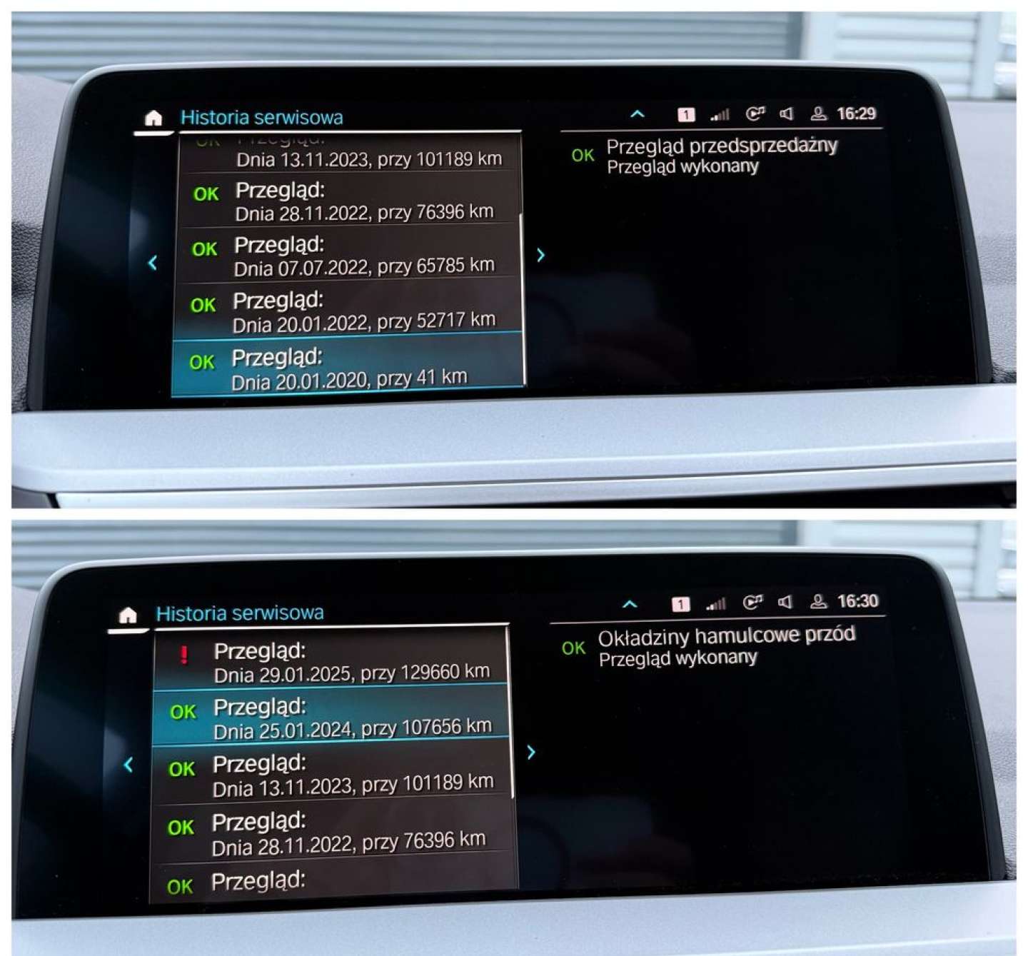 29.01.2025 при 129660 км моторне масло з масляним фільтром було замінено авторизованою службою BMW Inchape Wrocлав - рахунком для перевірки.
