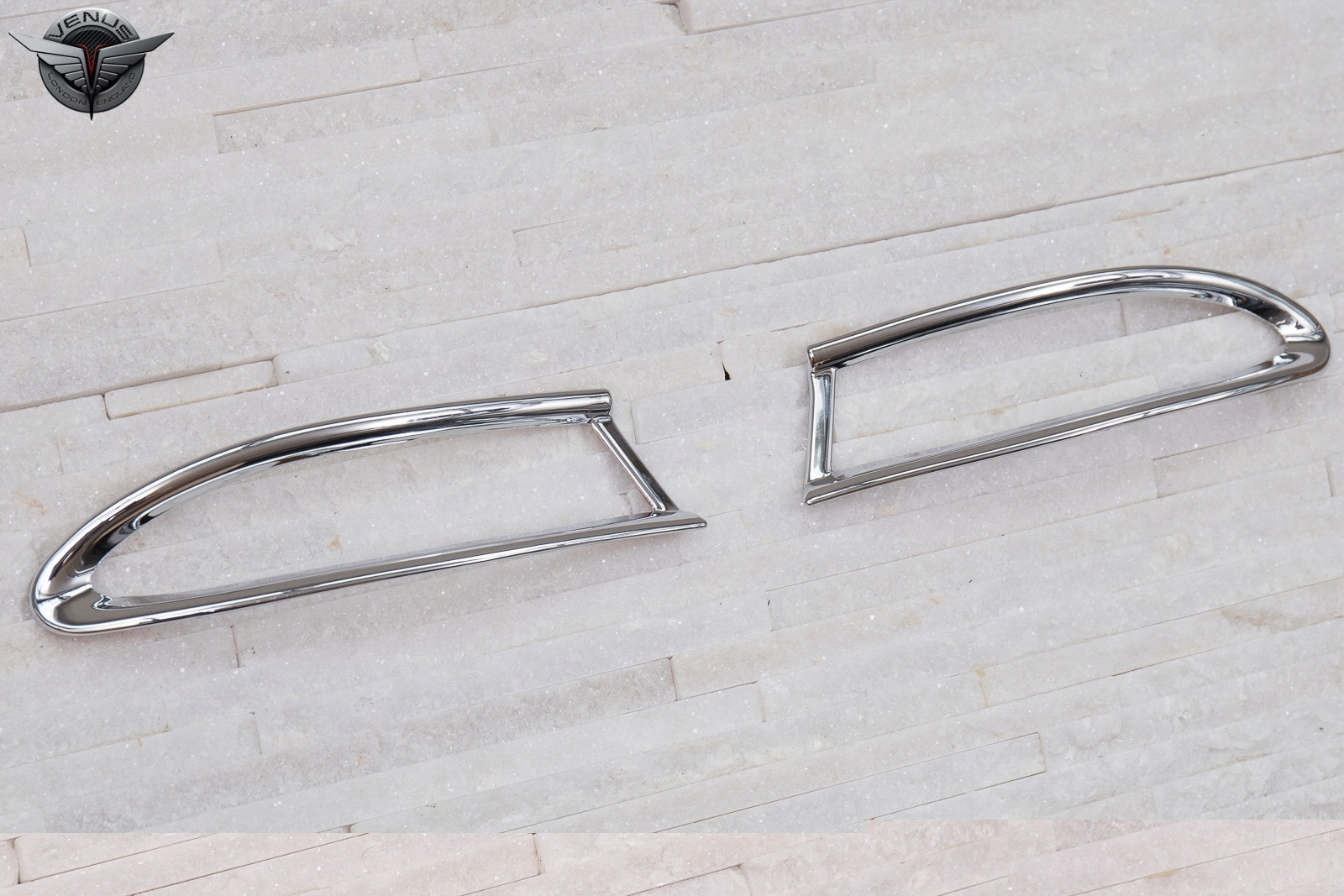 У набір входить набір із двох накладок на задні протитуманні фари. Виріб виготовлено з високоякісного хромованого ABS пластику. Вони кріпляться за допомогою двостороннього скотча Scotch 3M, наклеєного на внутрішню сторону елементів. Ми рекомендуємо професійне встановлення.