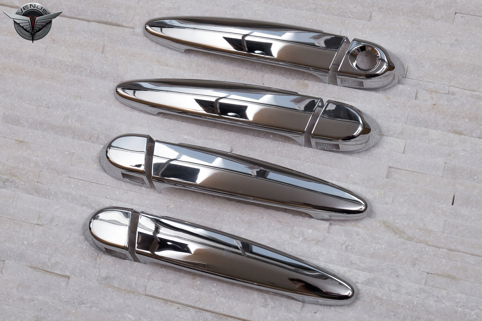 Декоративні хромовані накладки дверних ручок є доповненням, яке доповнює стиль автомобіля ноткою спортивної елегантності. Ідеально підігнані до ліній автомобіля, вони змінюють образ дверних ручок BMW X3 F25, роблячи їх справжньою окрасою автомобіля. Виріб виготовлено з високоякісного хромованого ABS пластику.