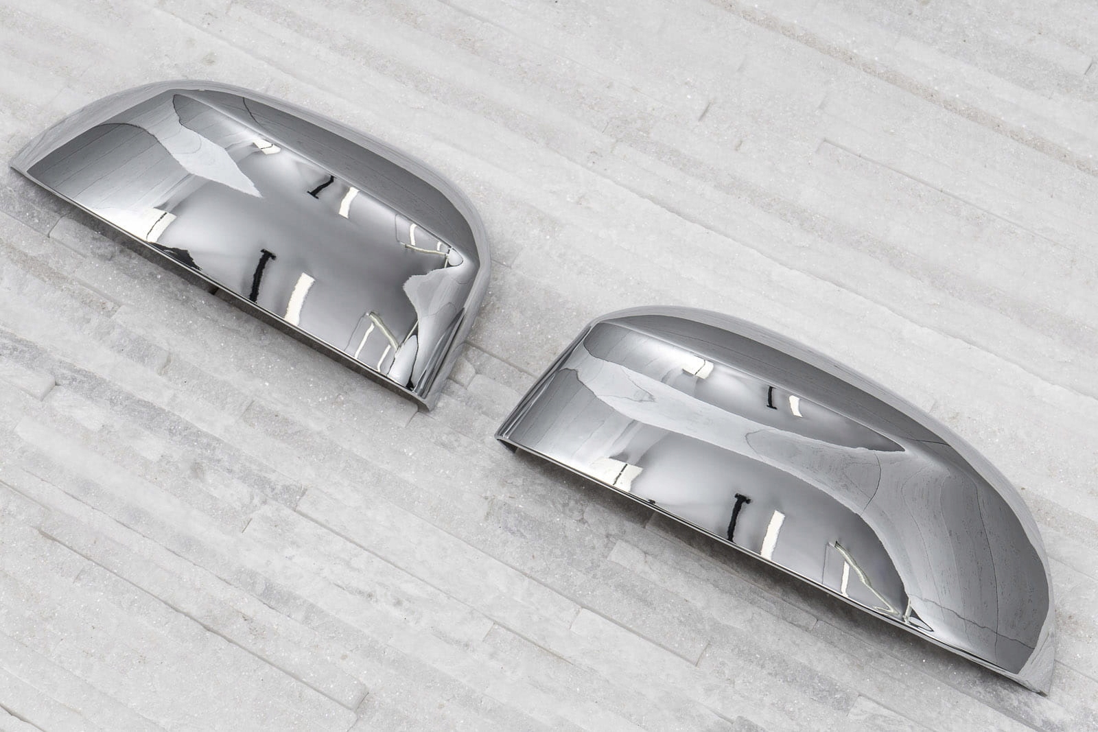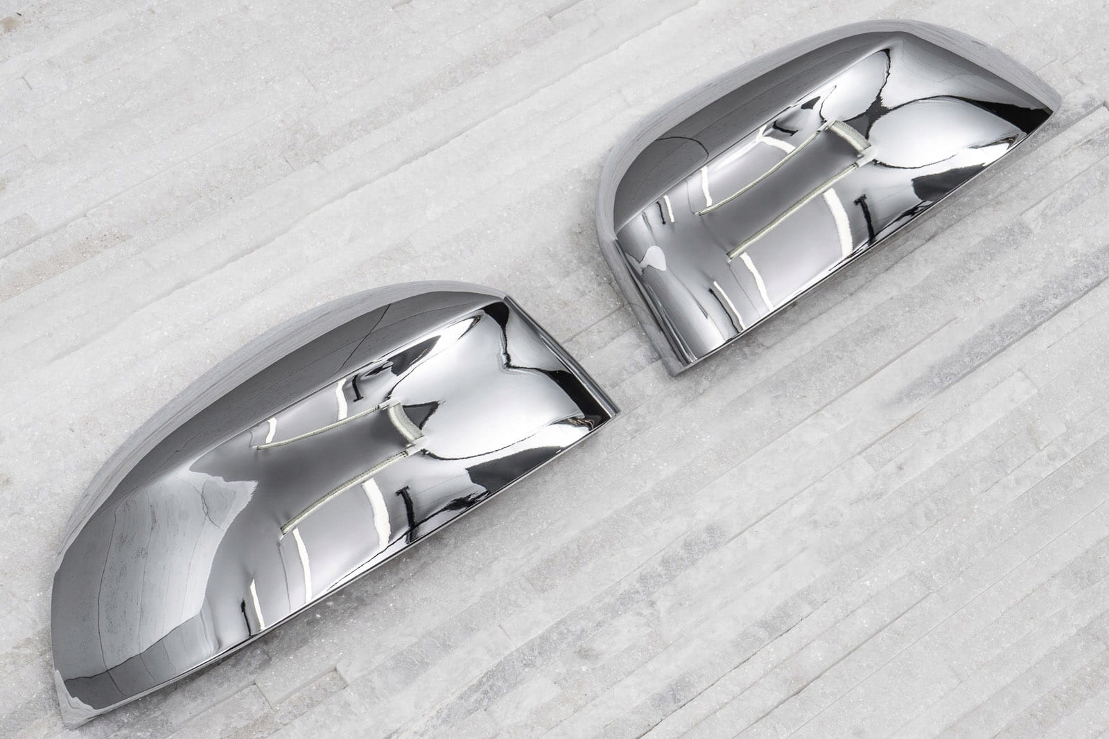 Декоративні хромовані кришки дзеркал підкреслюють динамічний стиль BMW. Накладки, завдяки дзеркальному блиску хромованої поверхні, доповнюють стиль автомобіля, надаючи йому індивідуальний характер. Виріб виготовлено з високоякісного ABS пластику.