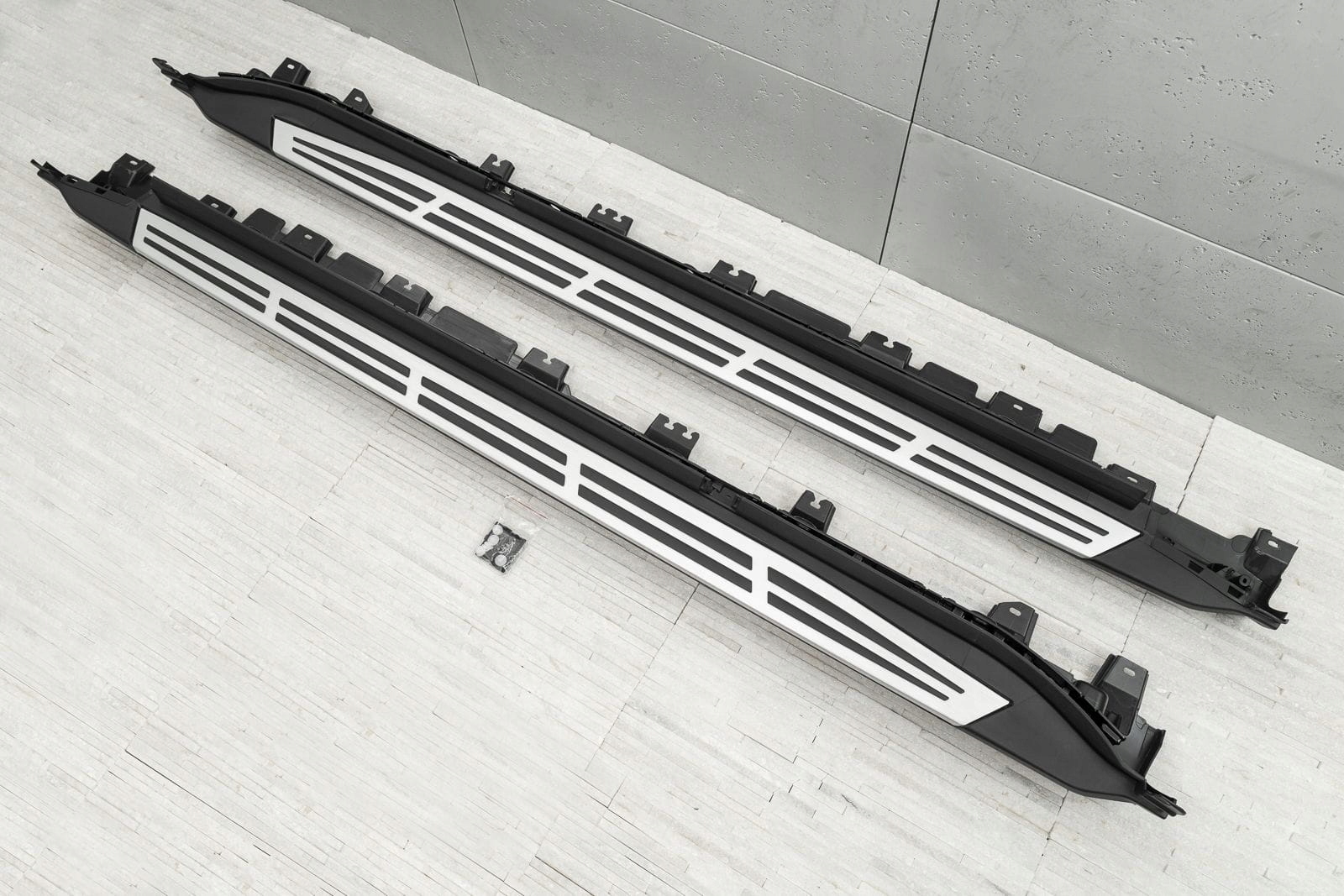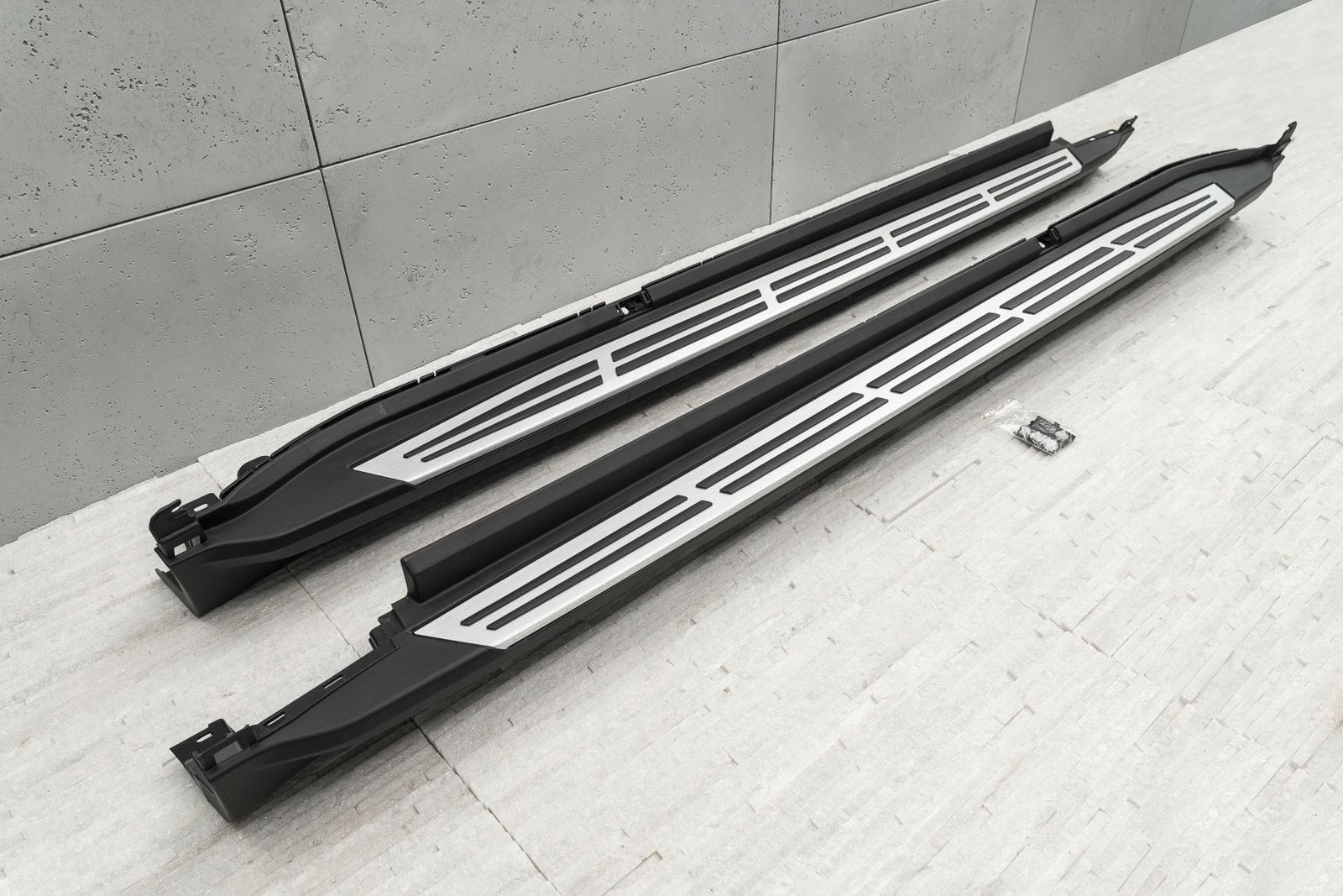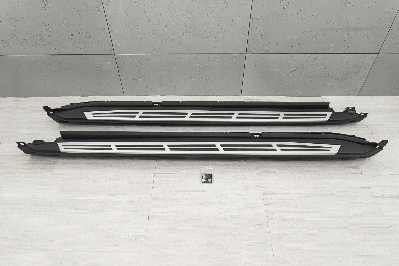 Автомобільні підніжки для MERCEDES GLA - ідеальне рішення для людей, які цінують комфорт і зручність. Виготовлені з високоякісного алюмінію та автомобільного пластику ABS, вони забезпечують не тільки елегантний зовнішній вигляд, але й стійкість до погодних умов. Завдяки цьому бічні підніжки виходять міцними і довговічними, і при цьому надовго зберігають свій зовнішній вигляд. Бічні підніжки підвищують комфорт посадки та висадки, що особливо корисно для дітей, людей похилого віку або людей з обмеженими можливостями пересування, а також забезпечують більш зручне робоче положення при розміщенні вантажу на даху автомобіля. Навантаження на одну сторону 160 кг гарантує, що бічні підніжки витримають набагато більше, ніж стандартне навантаження.