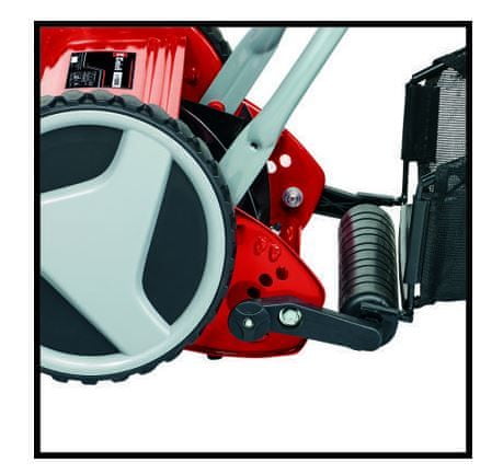 Мотокосарка GC-HM 400 — це довговічна, функціональна косарка без двигуна, яка забезпечує чисте, тихе та екологічне косіння газонів. до 250 м². Косильний шпиндель оснащений п'ятьма високоякісними ножами з шириною зрізу 40 см на шарикопідшипниках. 4-ступінчасте регулювання висоти зрізу від 13 мм до 37 мм з можливістю індивідуального регулювання. Пластмасовий циліндр має діаметр 46 мм. Косарка оснащена делікатними і великими колесами. Вигнута напрямна шина забезпечує оптимальну ергономіку під час роботи. Положення для паркування дозволяє безпечно та легко зберігати зум. 27-літровий травозбірник можна зняти та легко спорожнити.