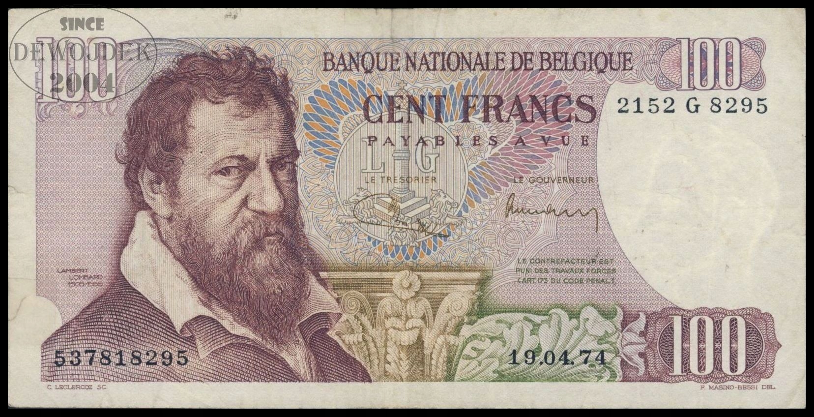 BNA - БЕЛЬГІЯ 100 франків 1974 # ПІДПИСИ 2 & 8 # P134b # VF-