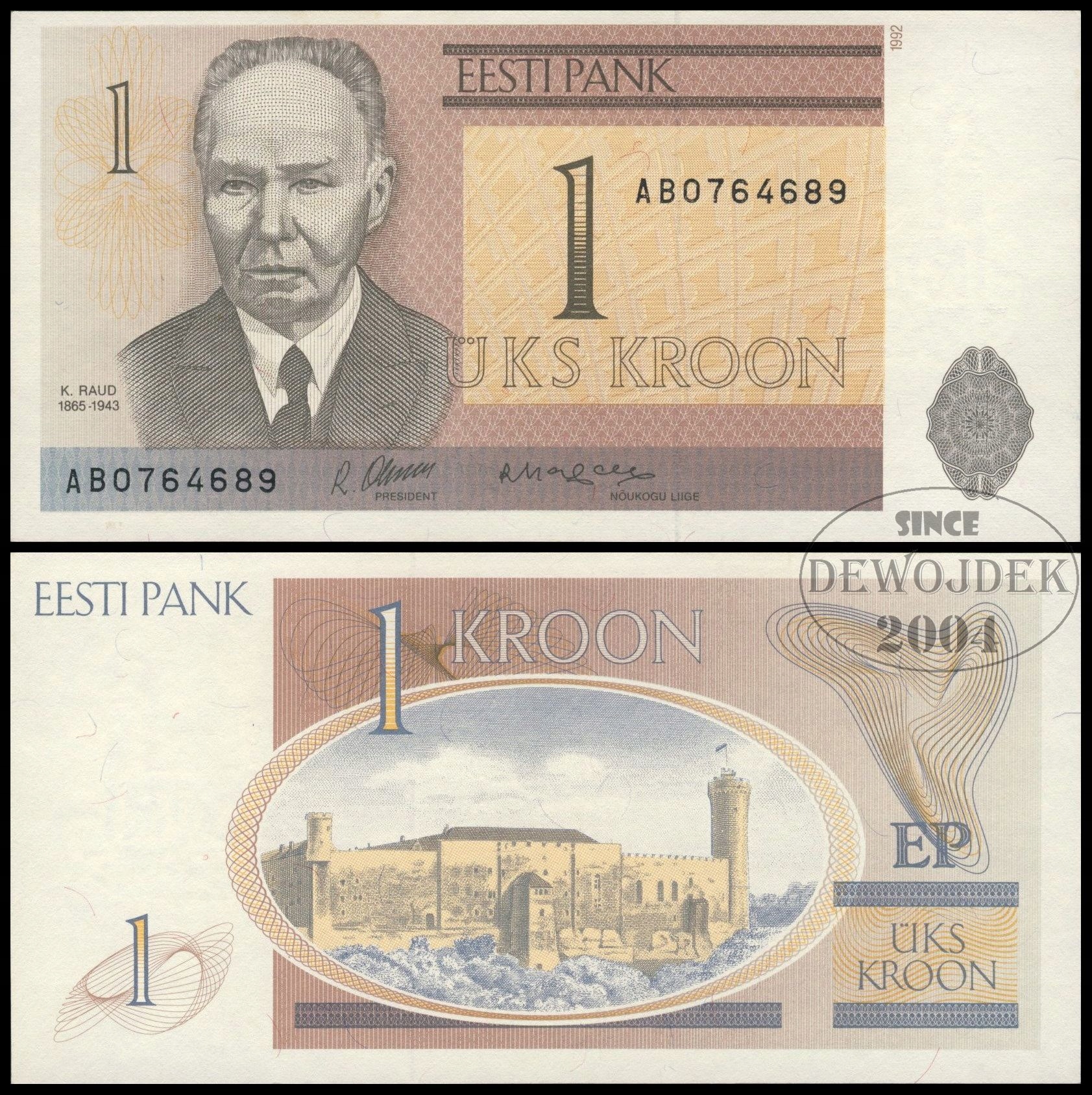BNA - ESTONIA 1 Kroon 1992 AB 0764689 # P69 # XF+
