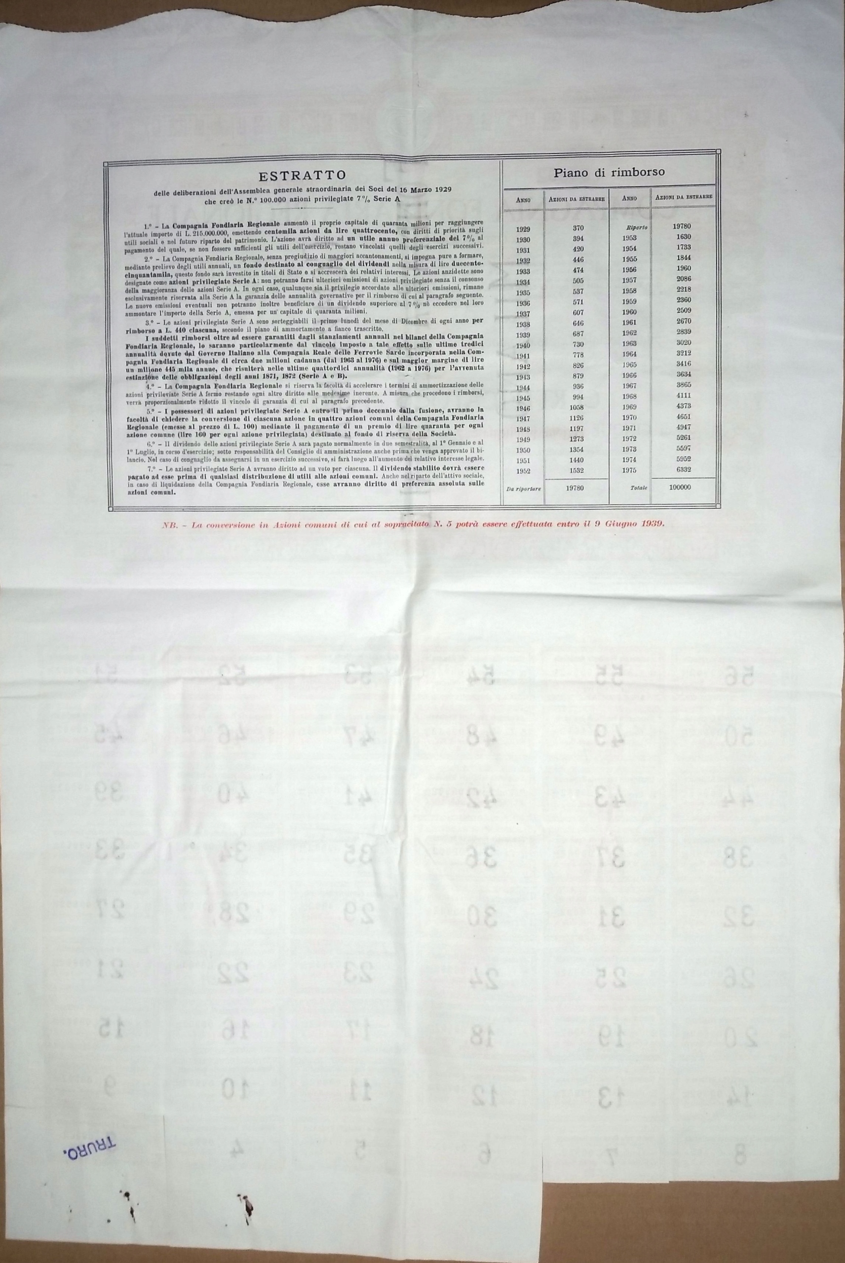 BNA - ІТАЛІЯ # COMPAGNIA REGIONALE MILANO # 5 АКЦІЙ 7% # 400 ЛІР # 1929