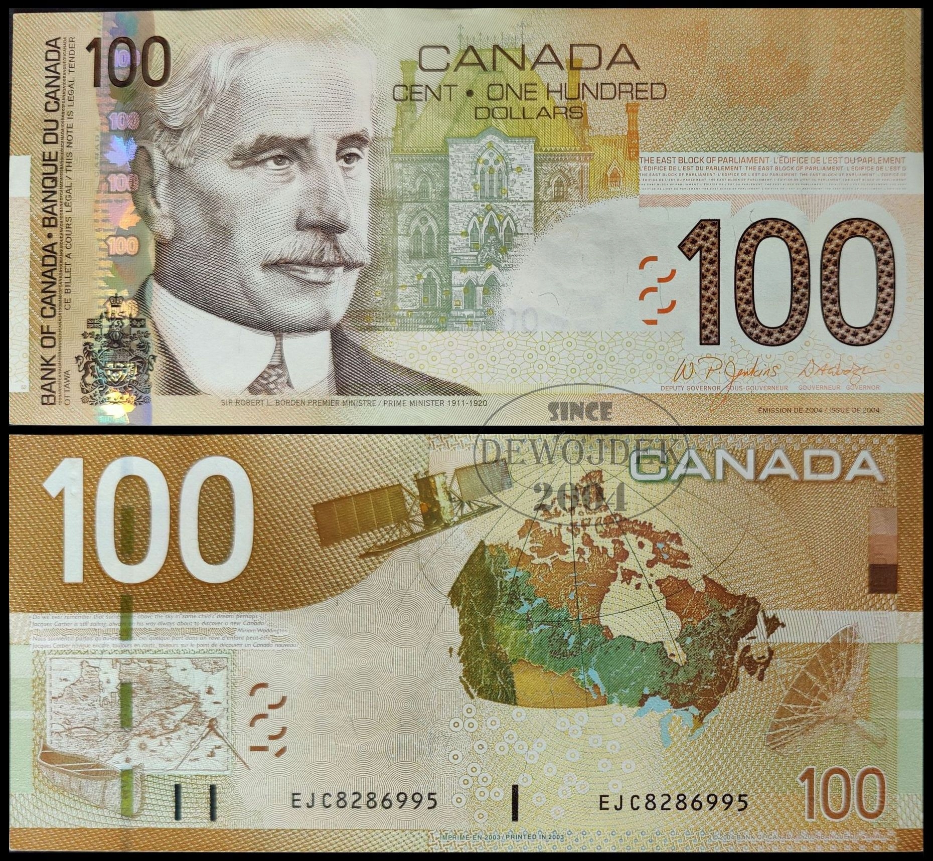 BNA - KANADA 100 Dolarów Dollars 2003 / 2004 EJC 8286995 # P105a # XF++