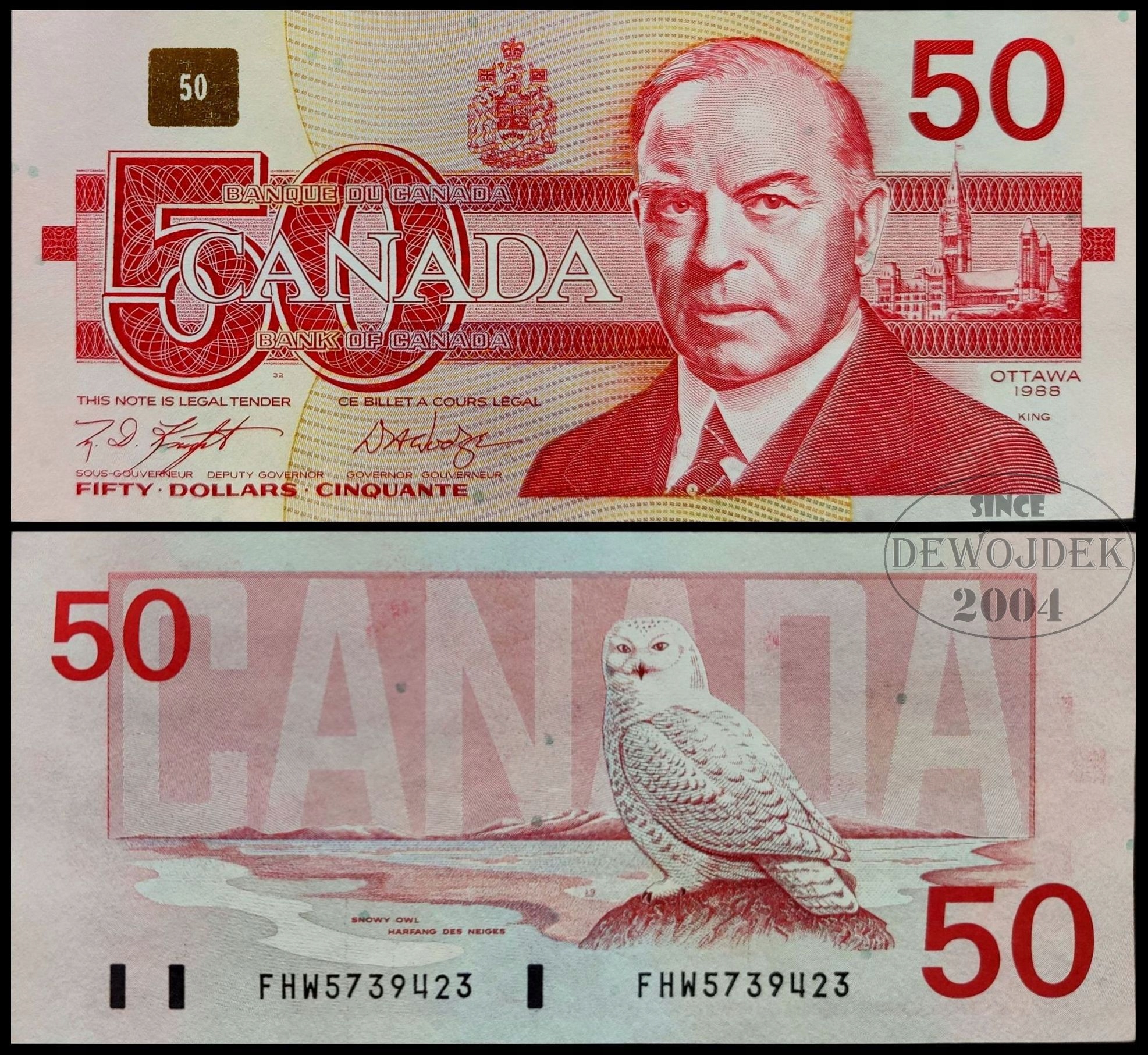 BNA - KANADA 50 Dolarów Dollars 1988 FHH 5017112 # P98a # XF+