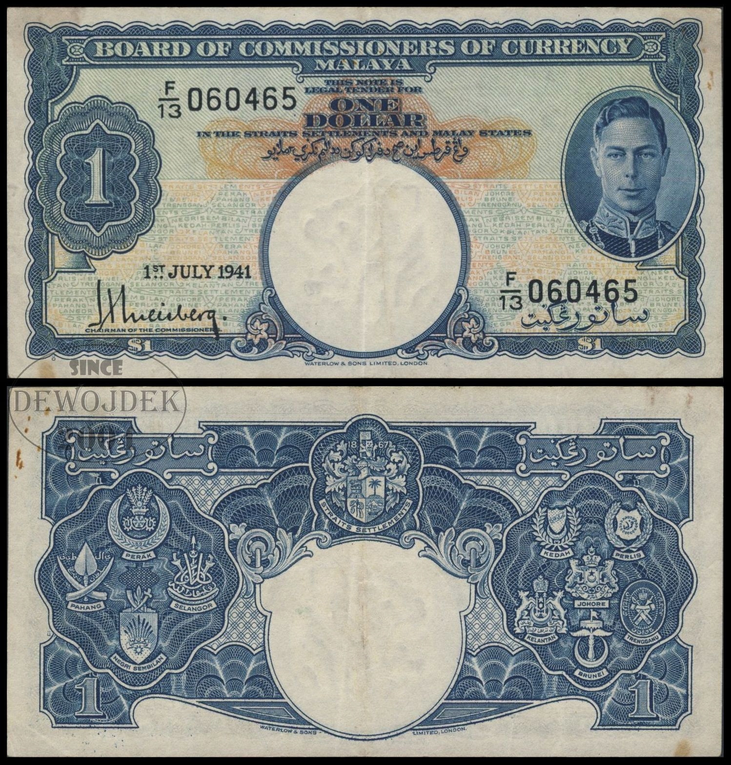 BNA - MALAJE 1 Dollar Dolar 1941 F/13 060465 # P11 # VF++