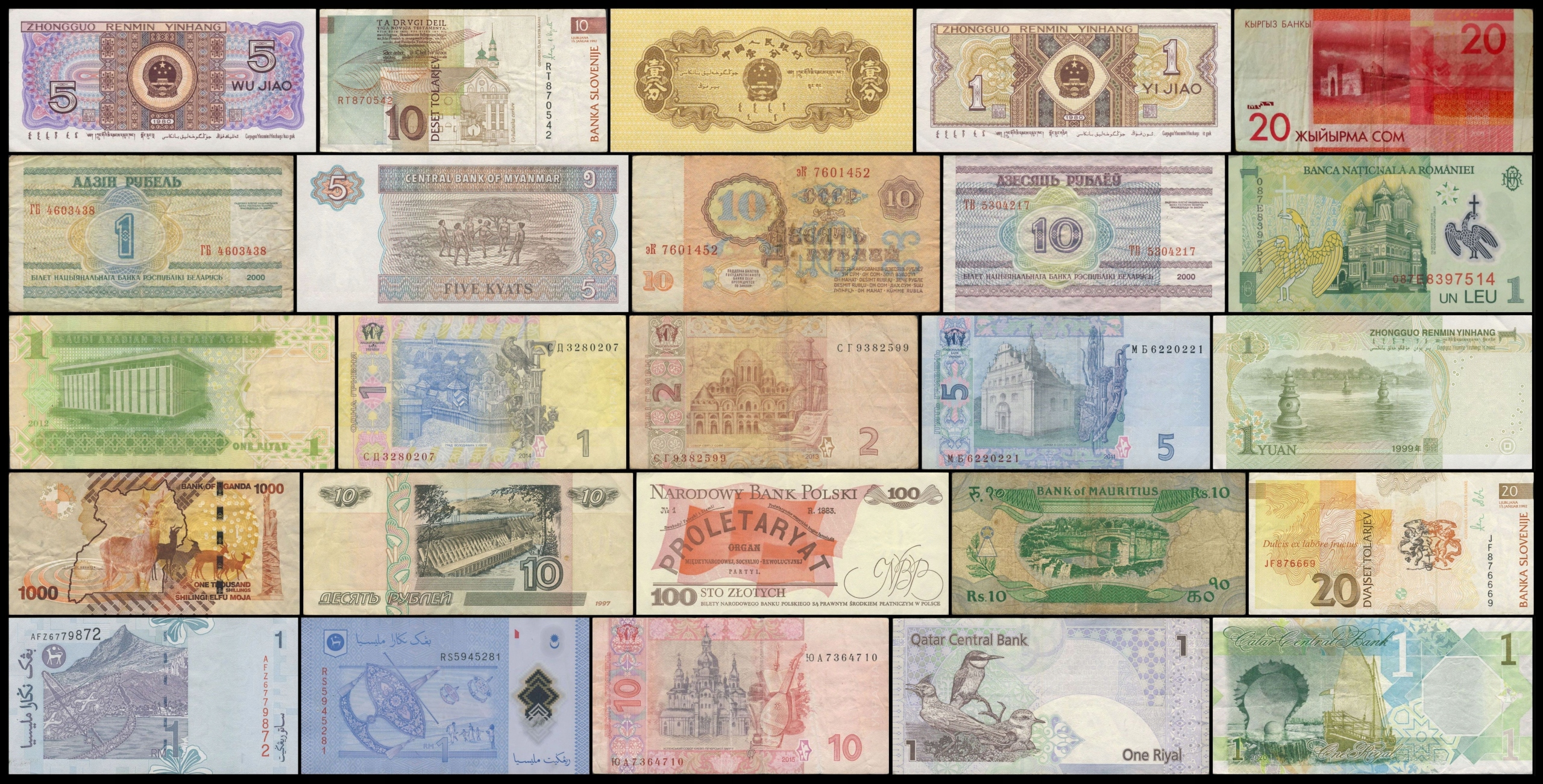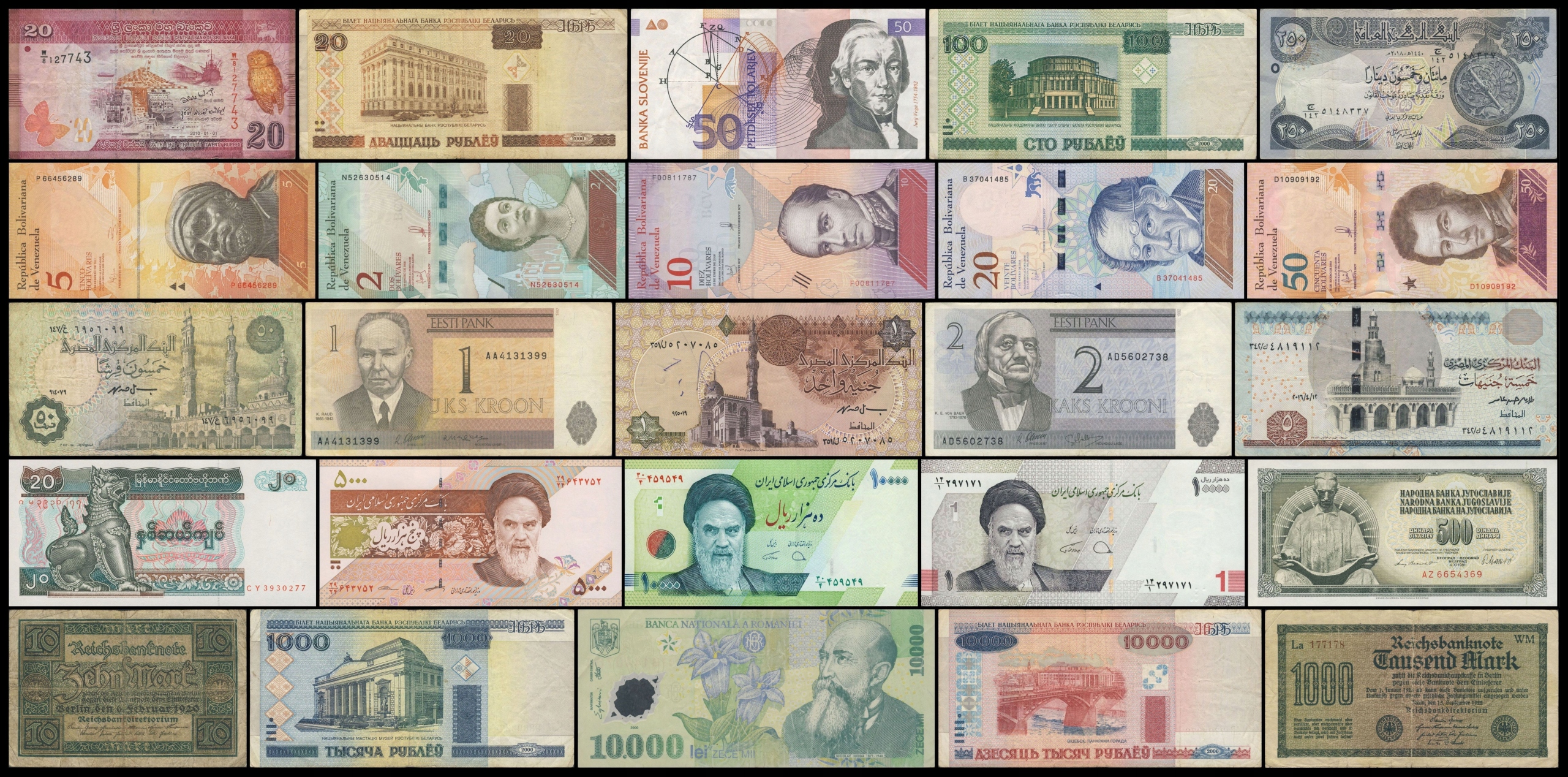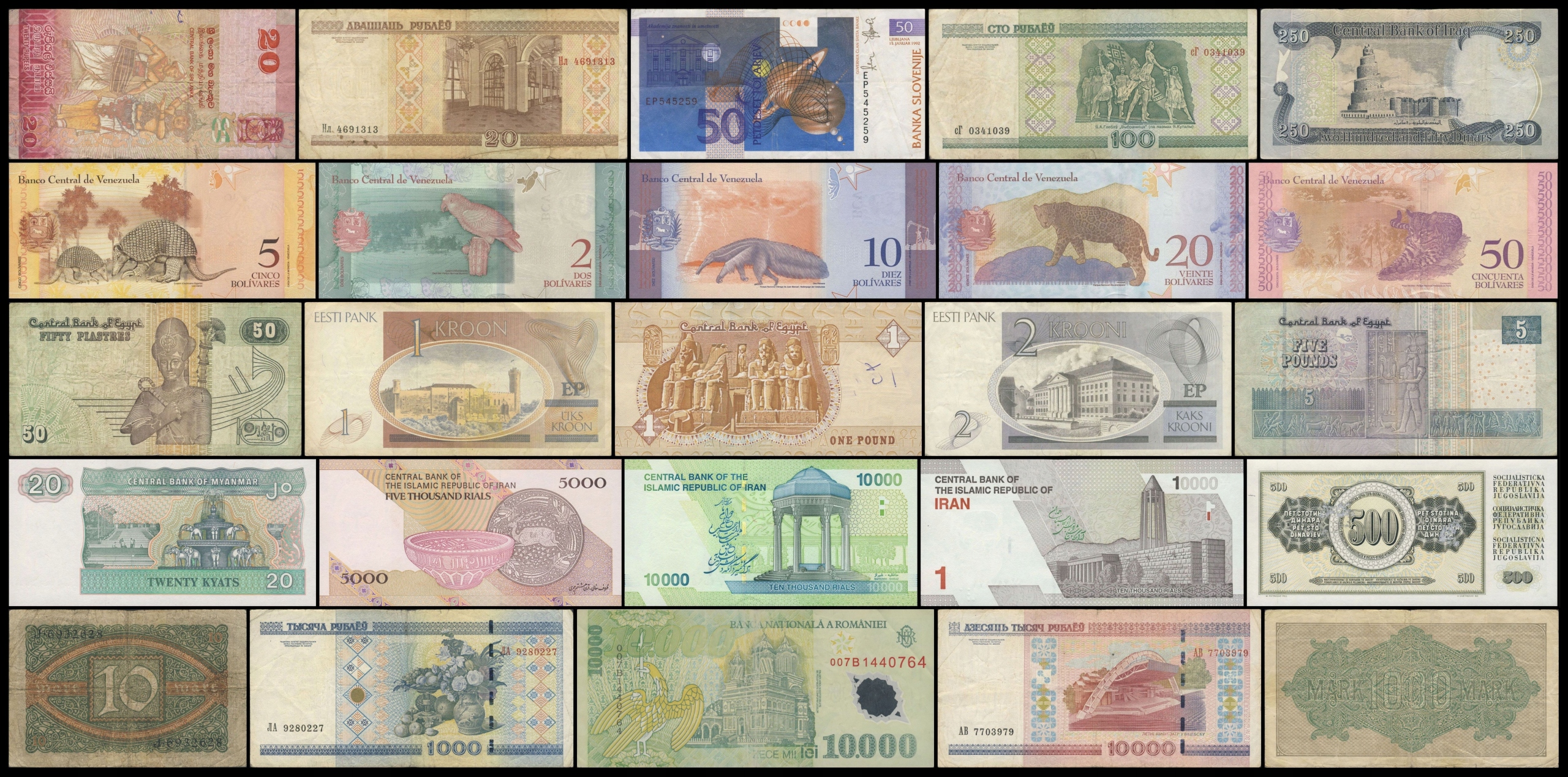 BNA - НАБІР З 50 БАНКНОТ КИТАЙ ЄГИПЕТ ЕСТОНІЯ ІРАН МАВРІКІЙ М'ЯНМА УГАНДА