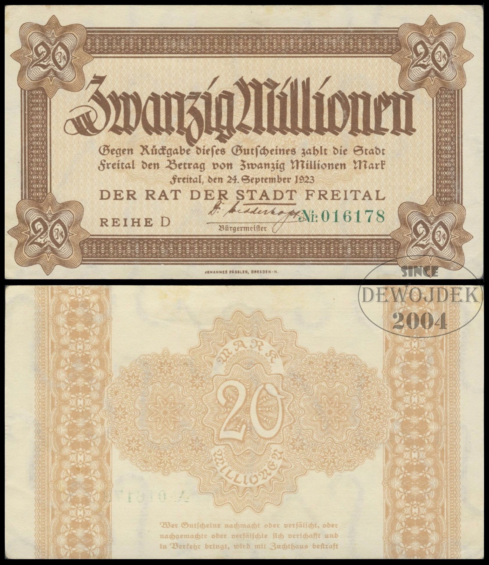 BNA - NIEMCY FREITAL 20000000 Marek 1923 D016178 # N223760 # 20 Milionów XF