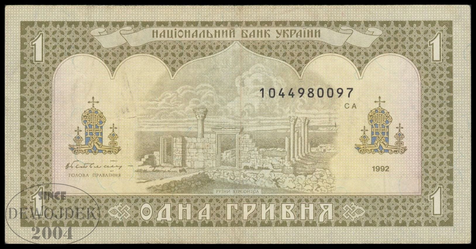 BNA - UKRAINA 1 Hrywna 1992 # podpis Getman # P103a # VF