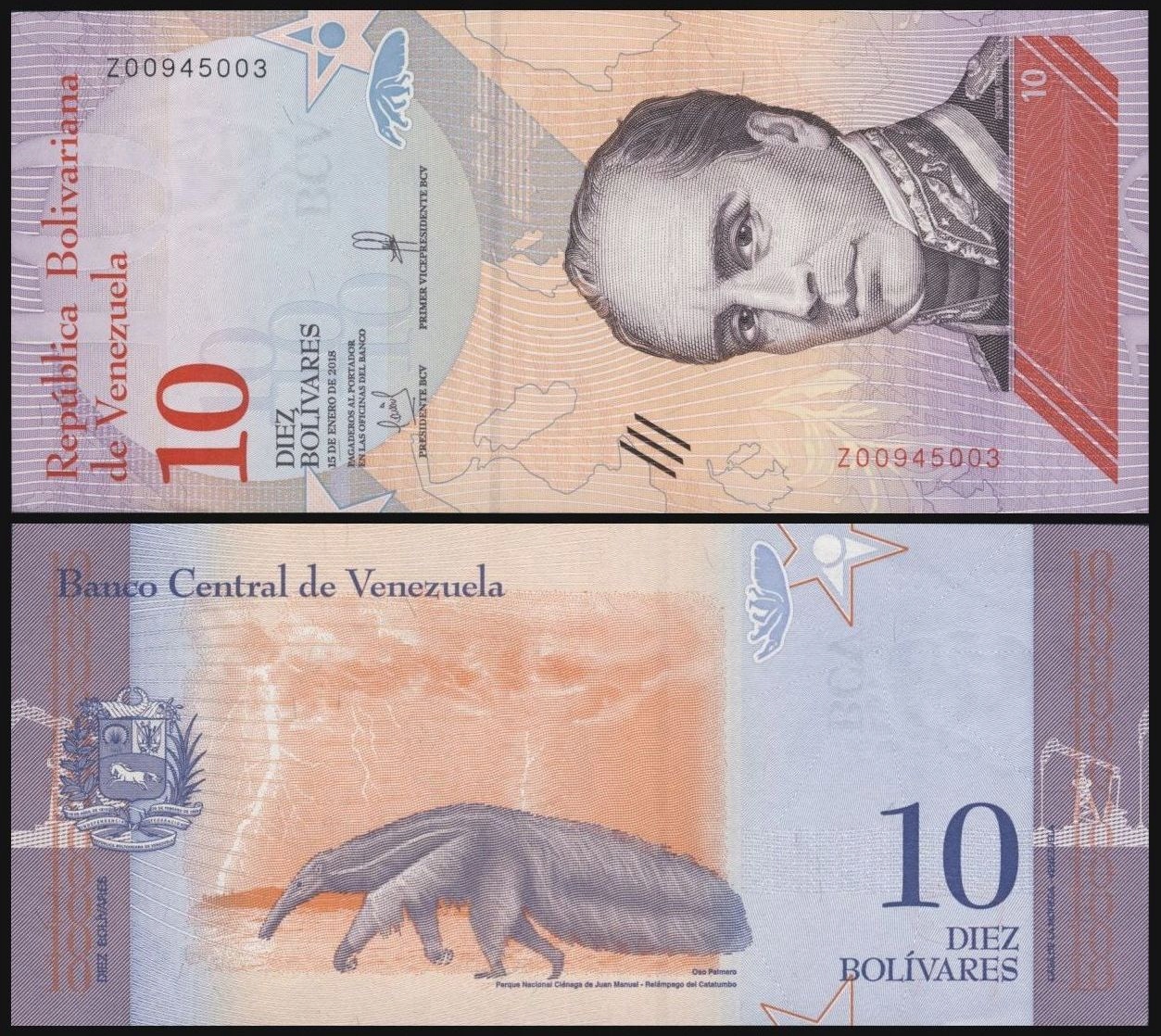 BNA - WENEZUELA 10 Bolivares 2018 Z # SERIA ZASTĘPCZA # P103r # UNC-