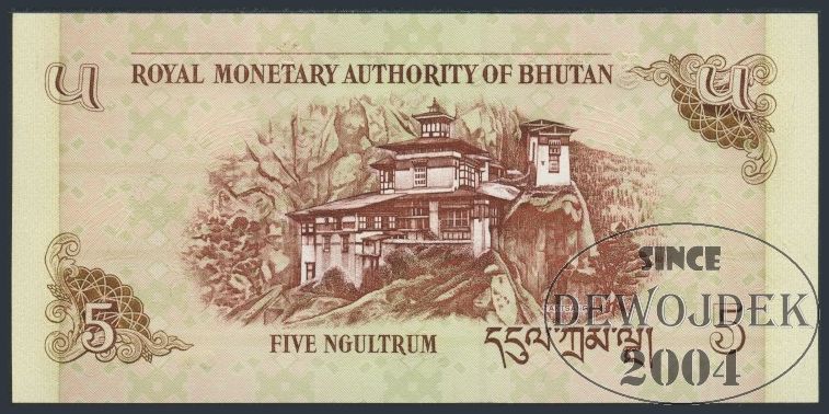 BNB - BHUTAN 5 Ngultrum 2006 J # P28a # PIERWSZA EMISJA # UNC