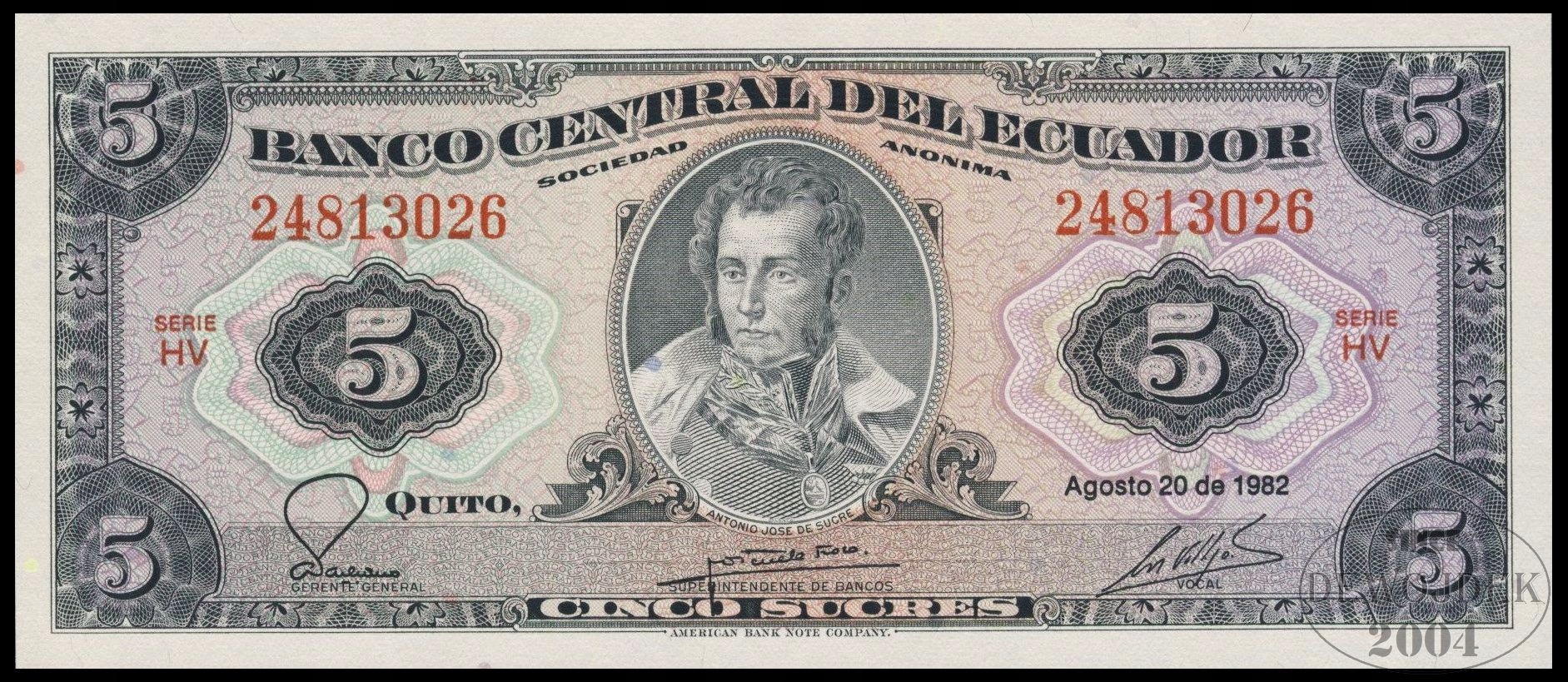 BNB - ECUADOR 5 Sucres 1982 HV 24813026 # P108b # UNC