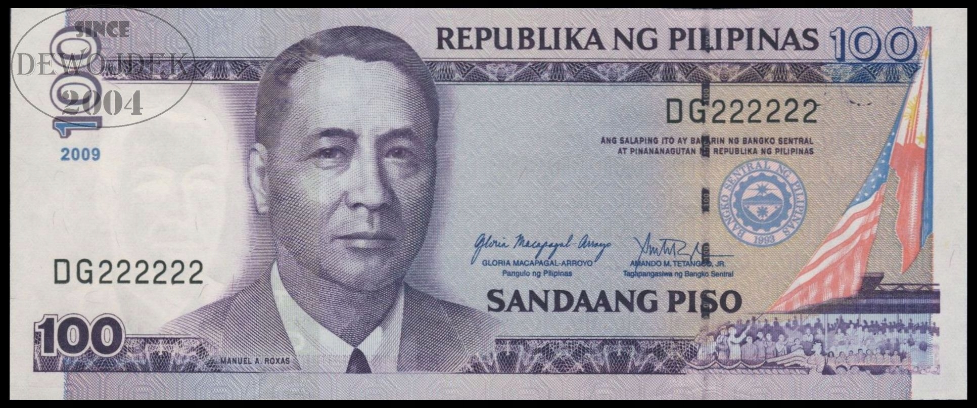 BNB - ФІЛІПІНИ 100 пізо 2009 DG 222222 # ТВЕРДИЙ НОМЕР # P194b # UNC