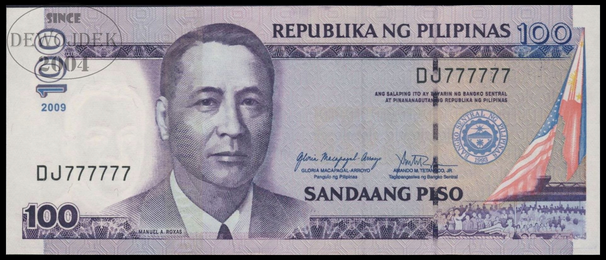 BNB - ФІЛІПІНИ 100 пізо 2009 DJ 777777 # ТВЕРДИЙ НОМЕР # P194b # UNC