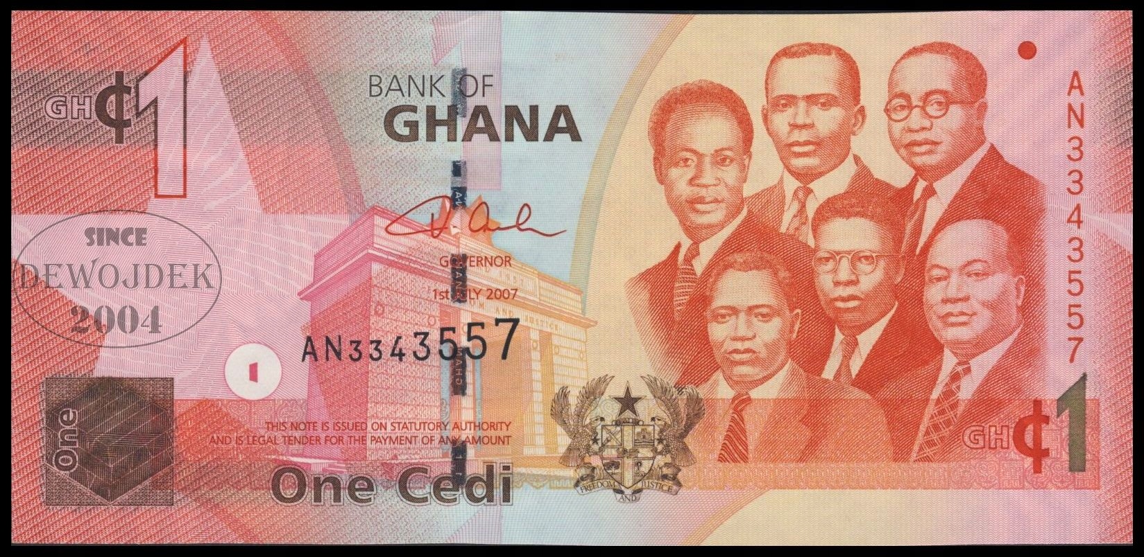BNB - GHANA 1 Cedi 2007 AN # PIERWSZA EMISJA # P37a # UNC
