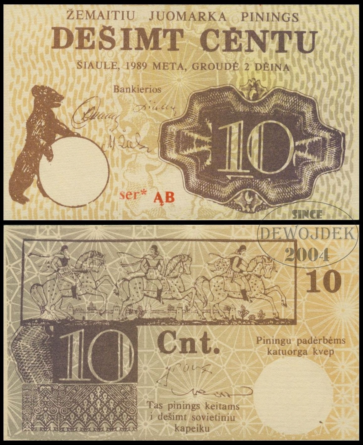 BNB - LITWA SZAWLE Šiauliai 10 Centów 1989 ser* ĄB # Dešimt Centu # UNC