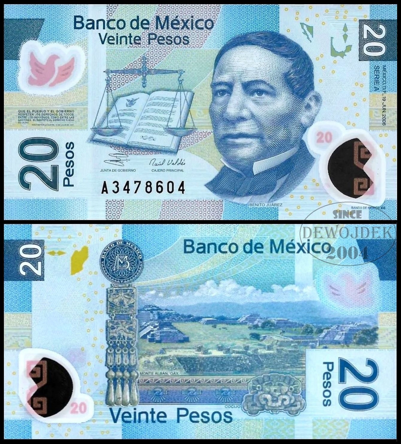BNB - MEKSYK 20 Pesos 2006 seria A nr F2178594 # P122a # POLIMER # UNC