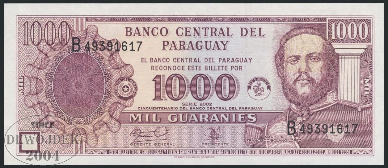 BNB - ПАРАГВАЙ 1000 гарантій 2002 B # P221 # ВИПАДКИ # UNC