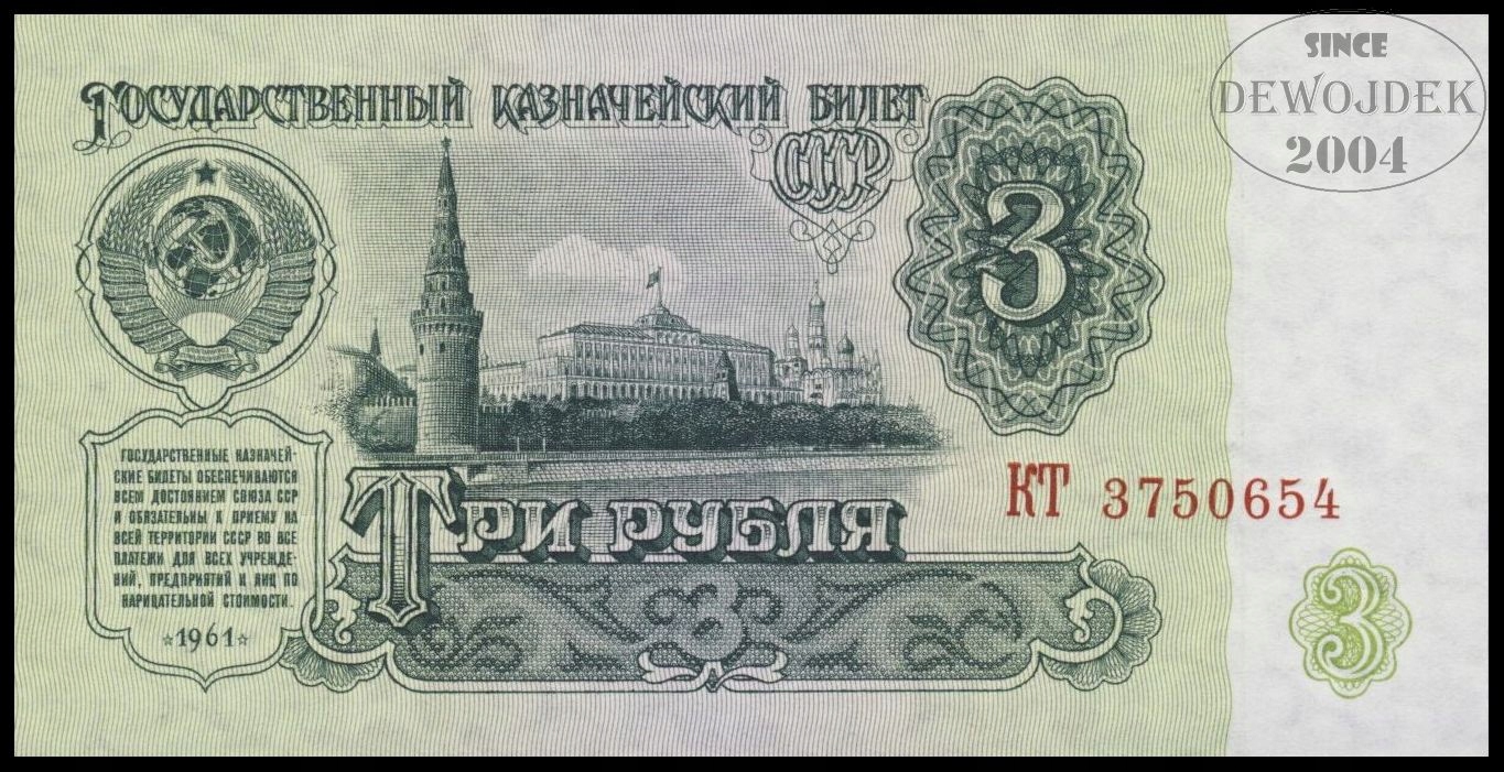 BNB - Росія СРСР CCCP 3 RUBLES 1961 KT 3750654 # нумерація XX # P223 UNC