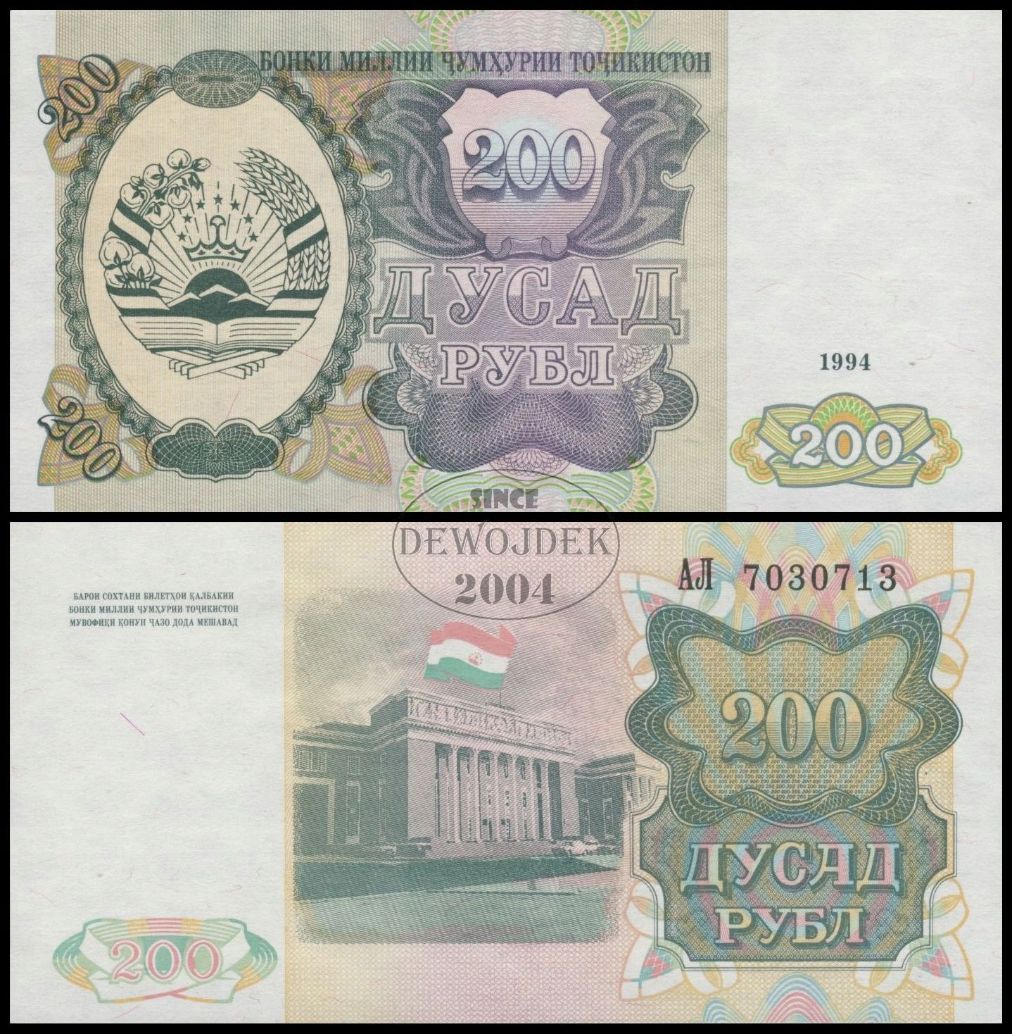 BNB - TADŻYKISTAN 200 Rubli 1994 AЛ 7030713 # P7 # UNC