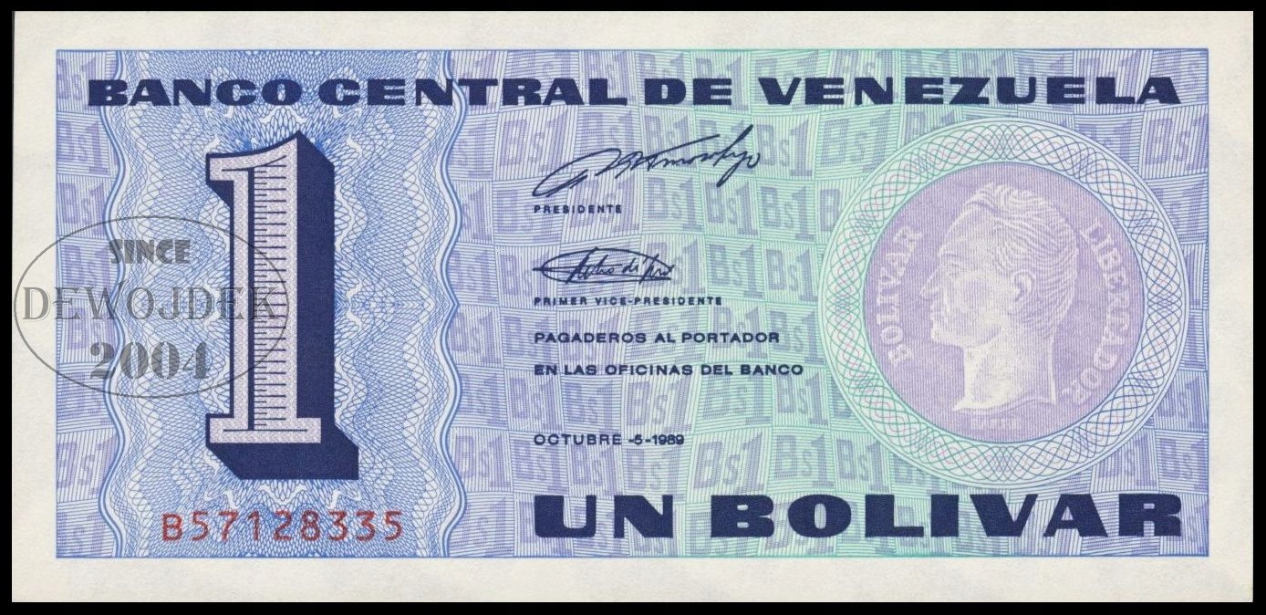 BNB - ВЕНЕСУЕЛА 1 болівар 1989 B 57128335 # P68 # UNC