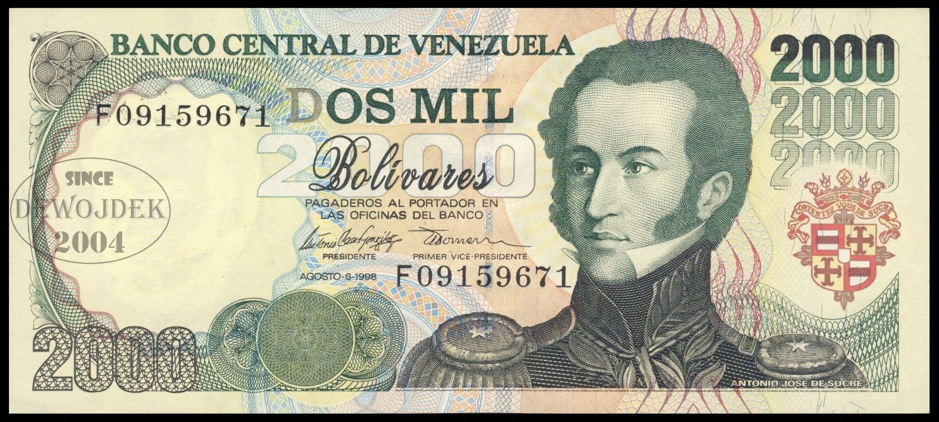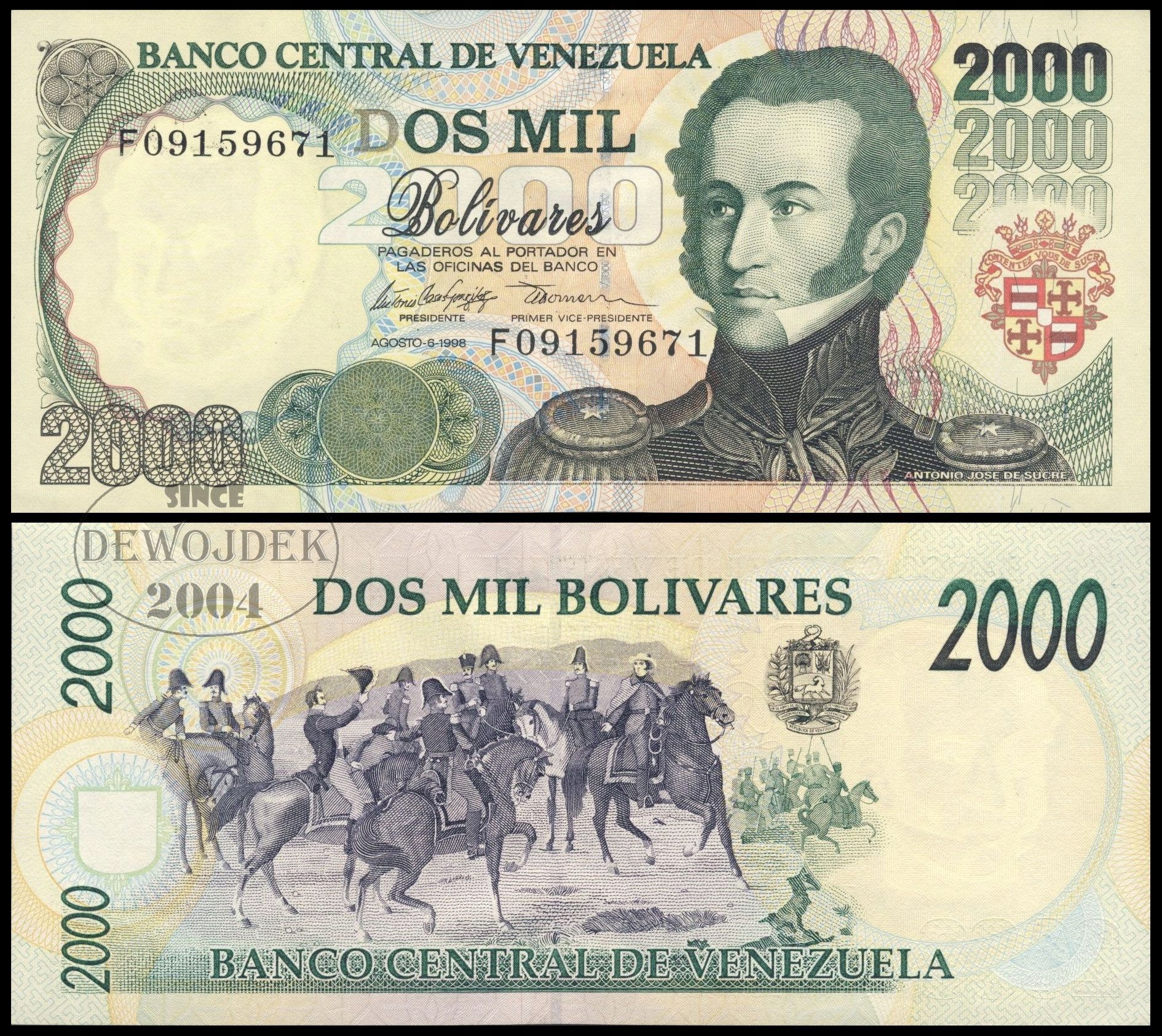 BNB - ВЕНЕСУЕЛА 2000 Боліварес 1998 Серпень F 09159671 # P77c # UNC