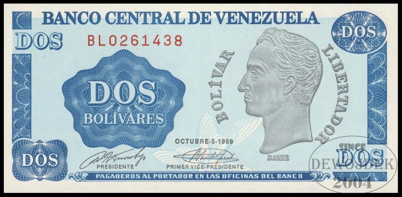 BNB - VENEZUELA 2 Bolivares 1989 BL 0261438 # P69 # UNC