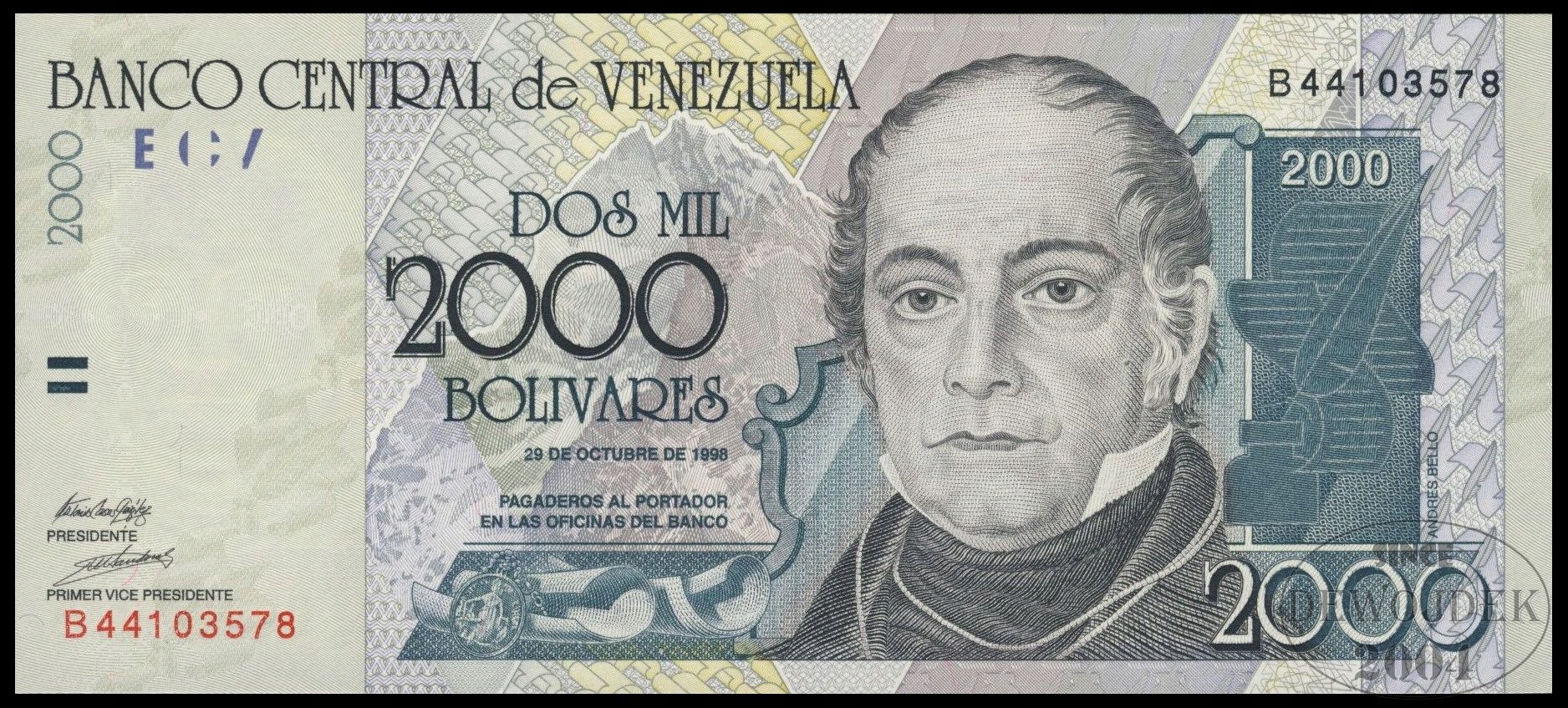 BNB - VENEZUELA 2000 Bolivares 1998 B 44103578 # P80 # UNC