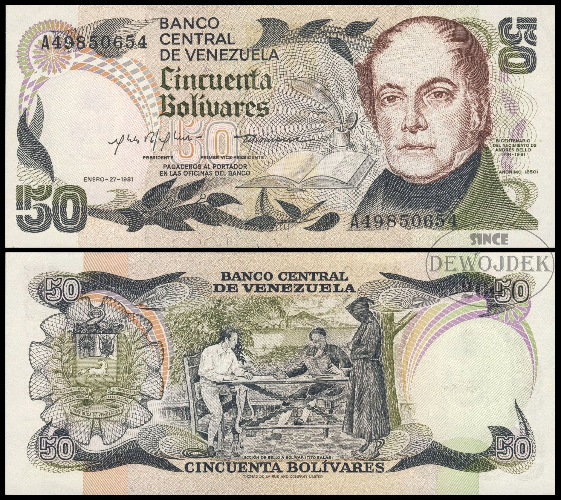 BNB - WENEZUELA 50 Bolivares 1981 A 49850654 # P58 # OKOLICZNOŚCIOWY # UNC