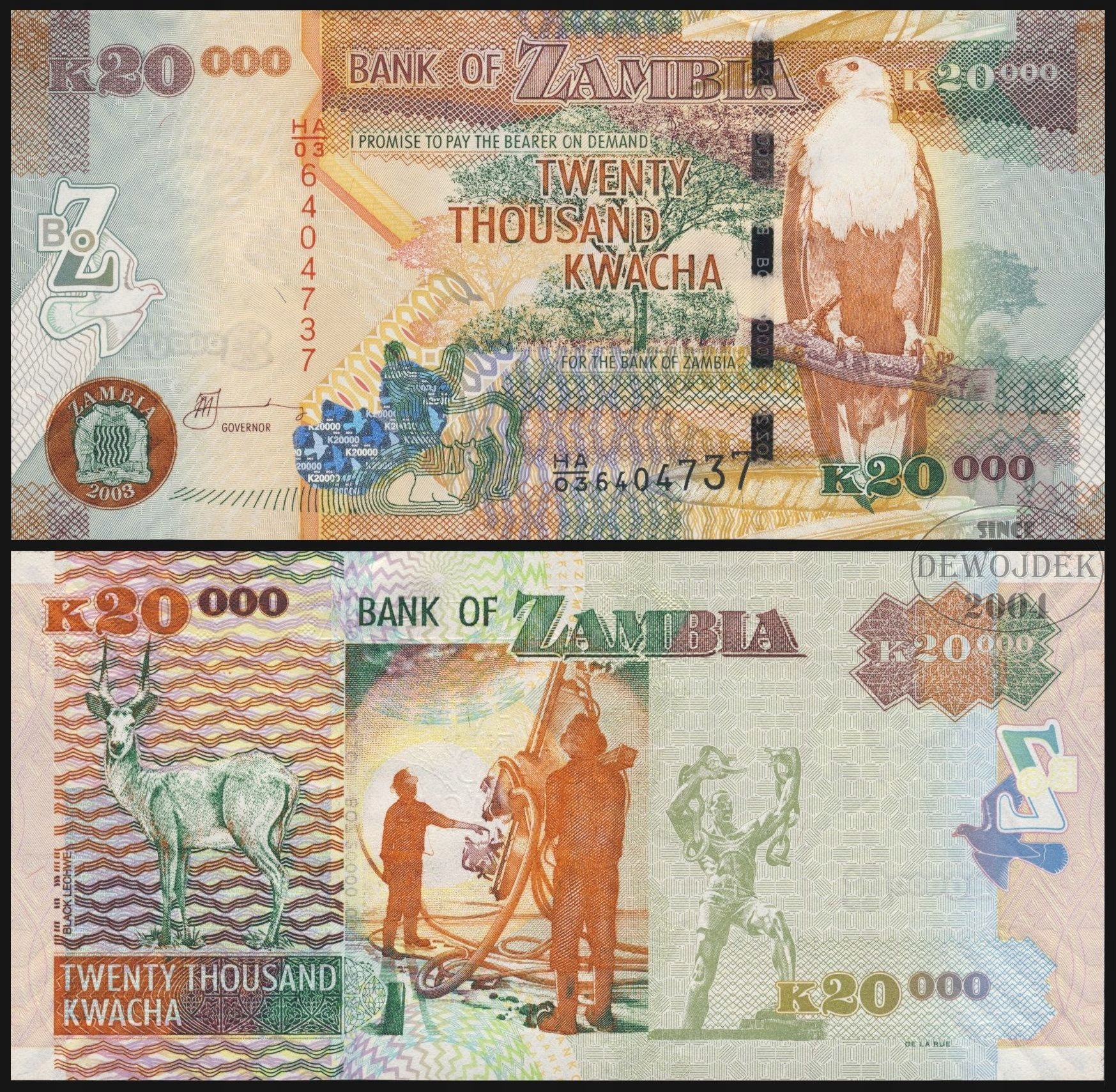 BNB - Zambia 20 000 Kwach 2003 HA/03 # P47A # UNC