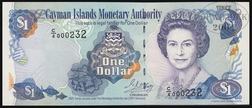 BNE - КАЙМАНОВИЙ ОСТРІВ 1 долар 2001 C/4 000234 # P26c # КАЙМАНОВИЙ # НИЗКИЙ НОМЕР # UNC