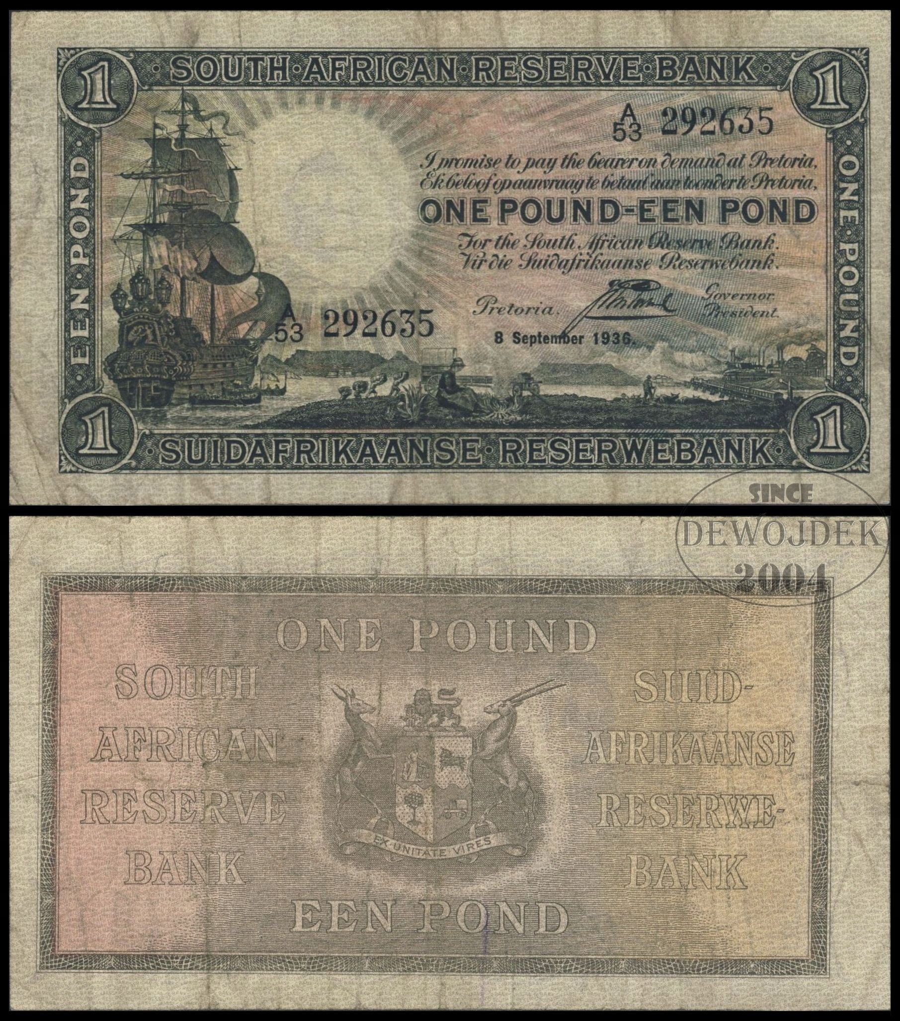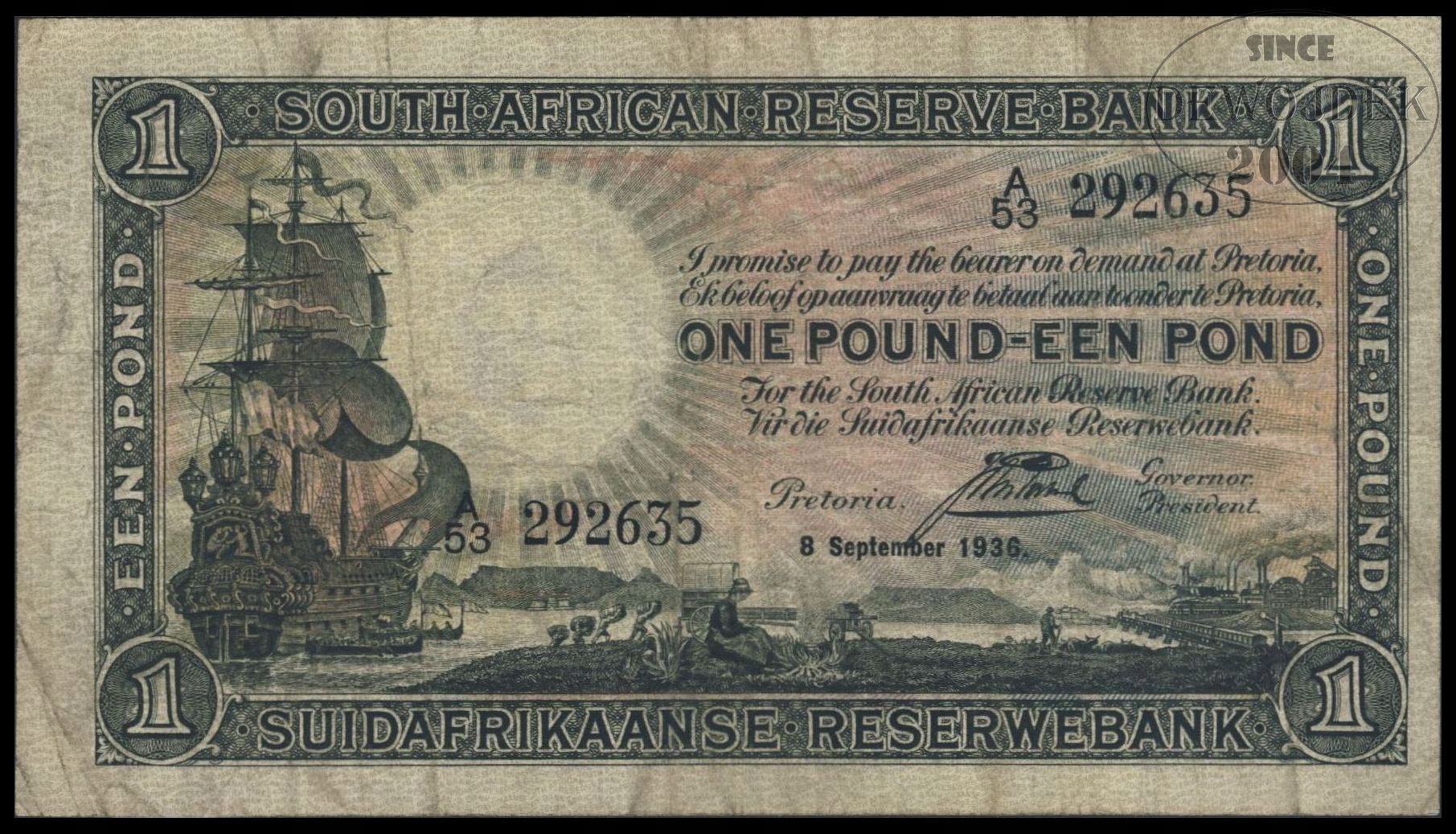 BNG - ПІВДЕННА АФРИКА 1 фунт 1936 A/53 # P84c # ПІВДЕННА АФРИКА # Південна Африка # VF-