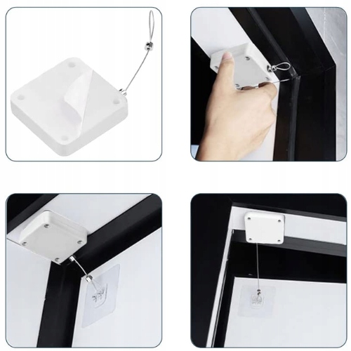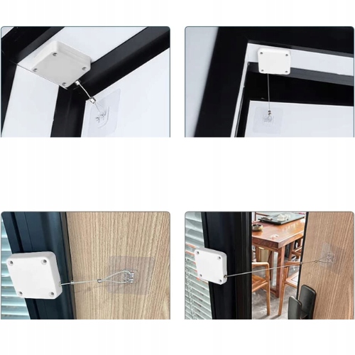 Дуже проста збірка та операція - просто приклеїти самодостатник на стіну, а спеціалізовану ручку на дверних крилах, а потім розтягніть сталевий кабель і прикріпіть його до ручки.