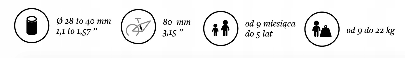– сидіння, прикріплене до рами велосипеда, версія 1P, ширина від 120 до 175 мм і макс до 22 кг