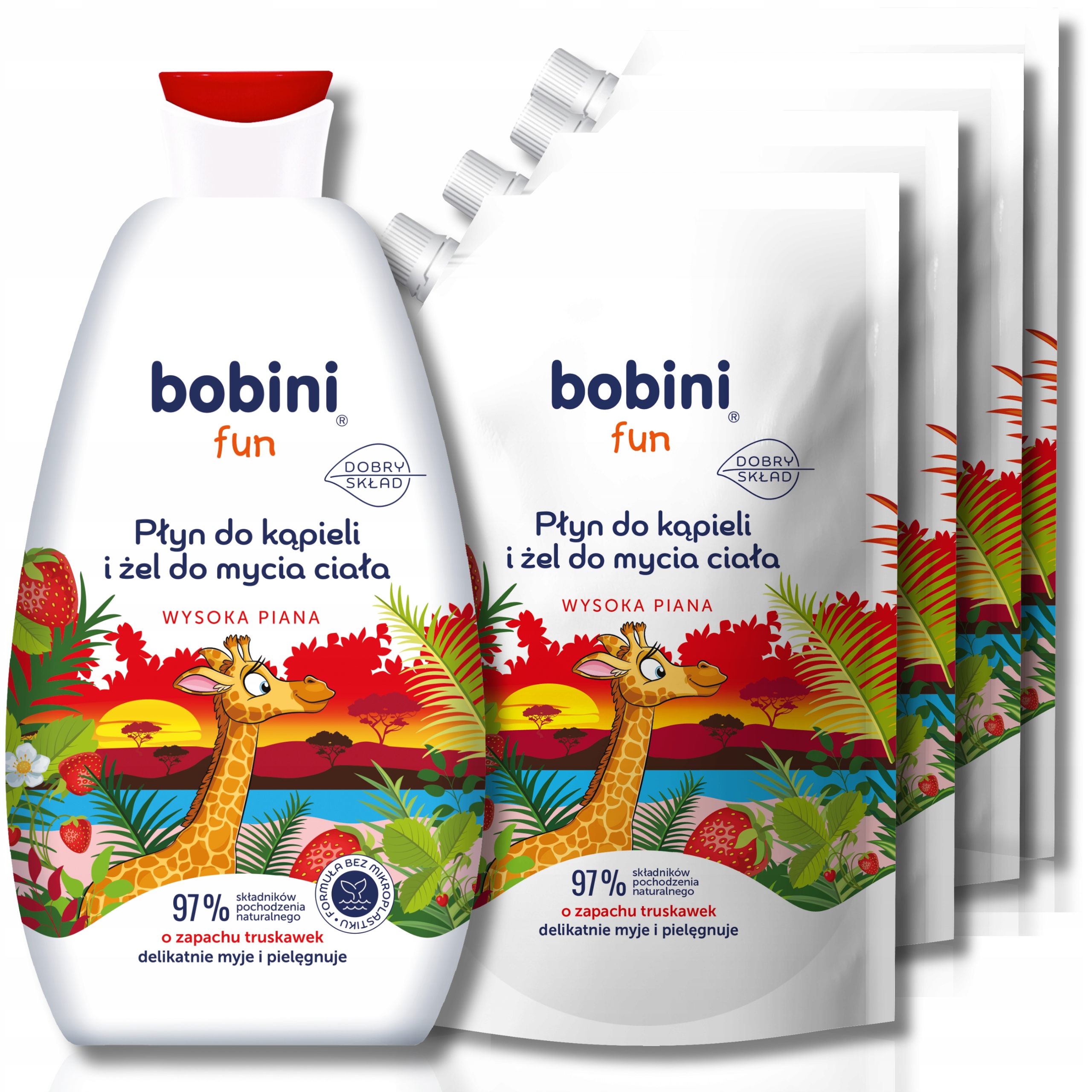 BOBINI Гель для вмивання для дітей Рідина для ванн 2в1 Полуниця 5 х 500мл 4+1