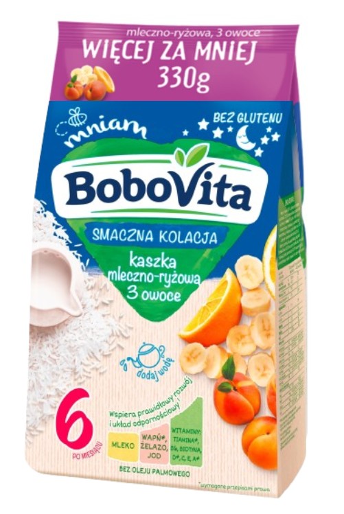 BOBOVITA MILK AND RICE PERIMENTS 3 fruits 330g