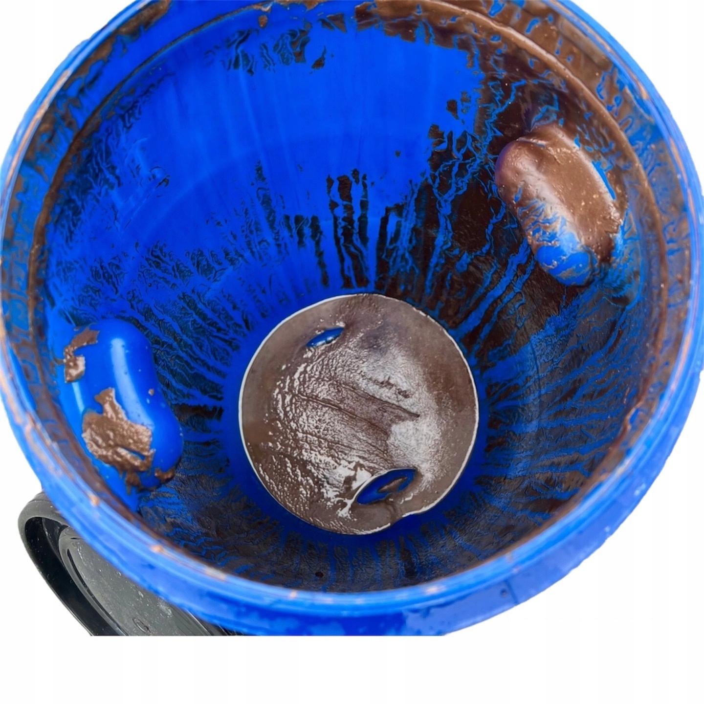Один раз використана бочка, із залишками шоколаду, потребує миття. Зовнішню частину попередньо вимили мийною машиною під тиском, але на кришці все ще можуть бути забруднення та сліди етикетки.