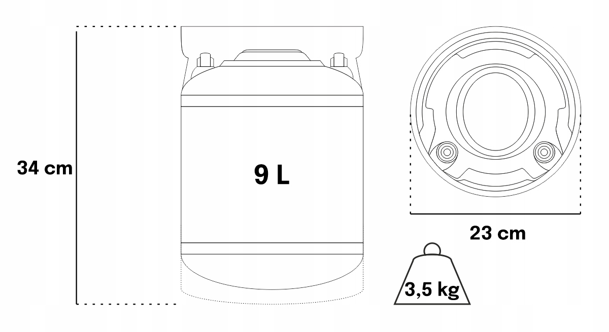 - РОЗМІРИ : b> діаметр 23 см, висота 34 см, місткість 9 л.