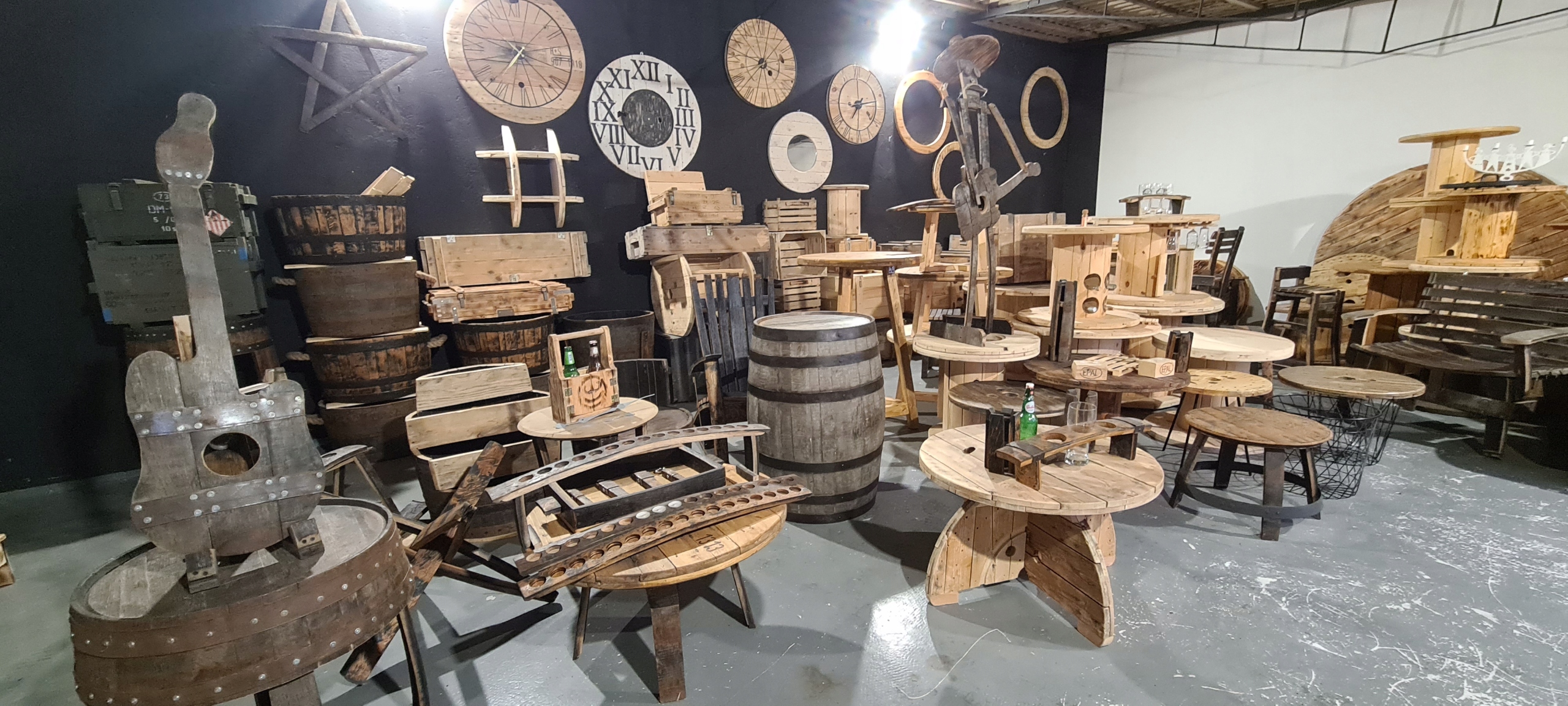 -годинники, дзеркала, столи, стільці, табурети, журнальні столики, військові скрині, бочки (200л, 225л, 500л), підставки під пляшки, лави, свічники, дерев'яні дошки, бочка. вазони.