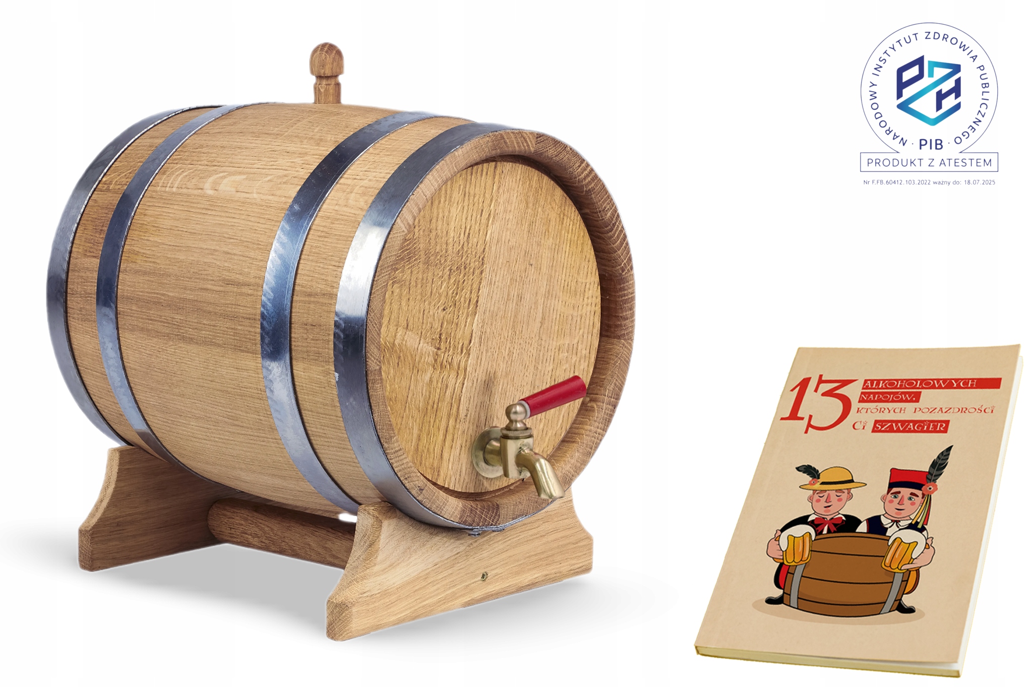 - При замовленні бочки ви також отримуєте корок і дерев'яну підставку, завдяки чому виріб буде чудово виглядати як доповнення до вашого дому.