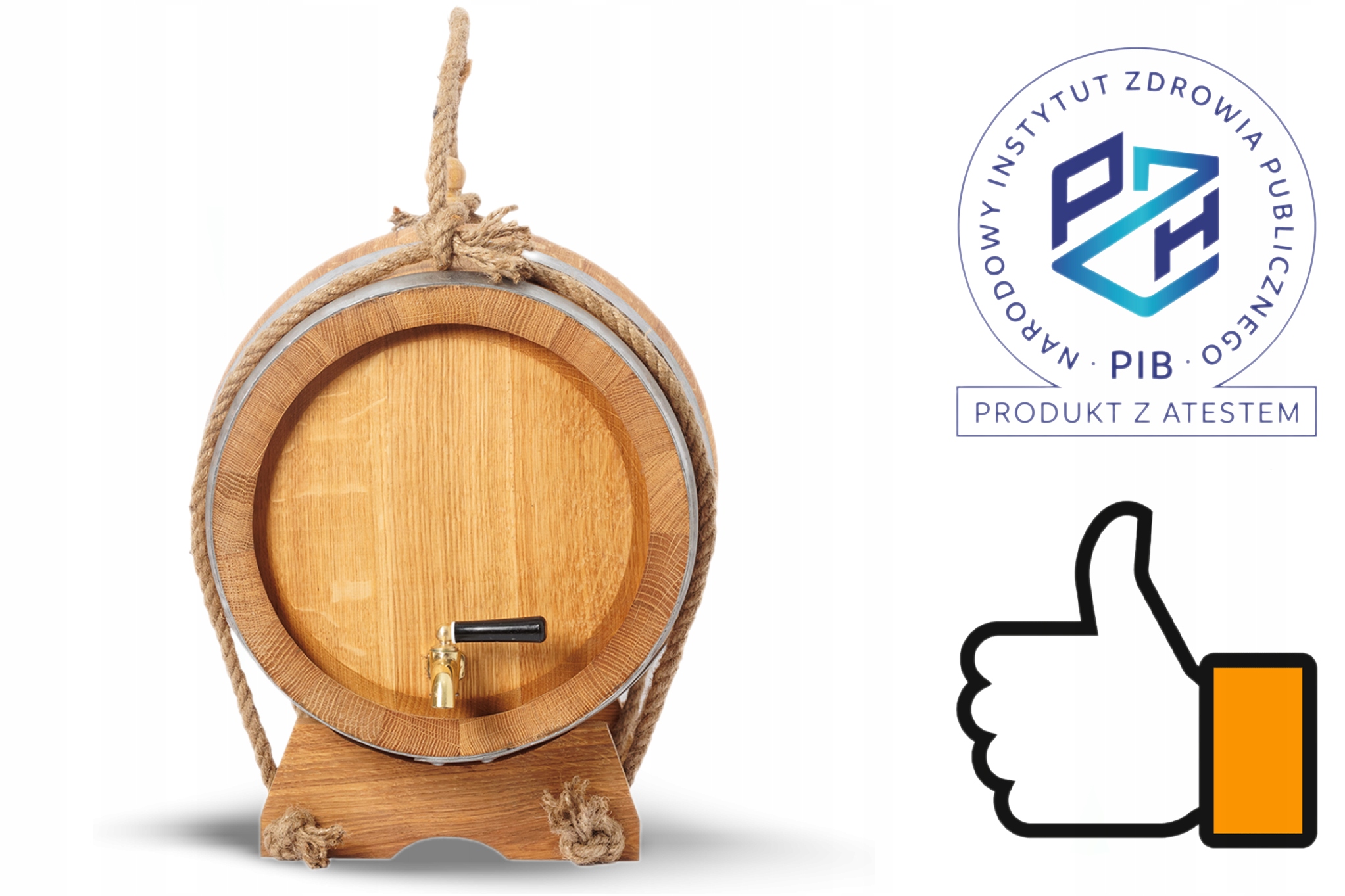 - При замовленні бочки ви також отримуєте пробку та дерев'яну підставку, завдяки чому виріб буде чудово виглядати як доповнення до вашої квартири.
